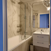Две спальни со встроенными шкафами. В коридоре напротив ванны еще один большой встроенный шкаф.