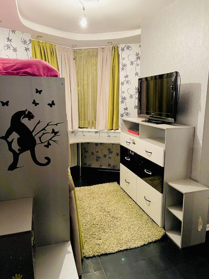В квартире просторная кухня с эркером, гостиная оформленная красивой аркой, спальня и две небольшие смежные комнаты для детей, можно использовать как кабинет и детская .