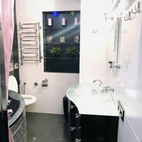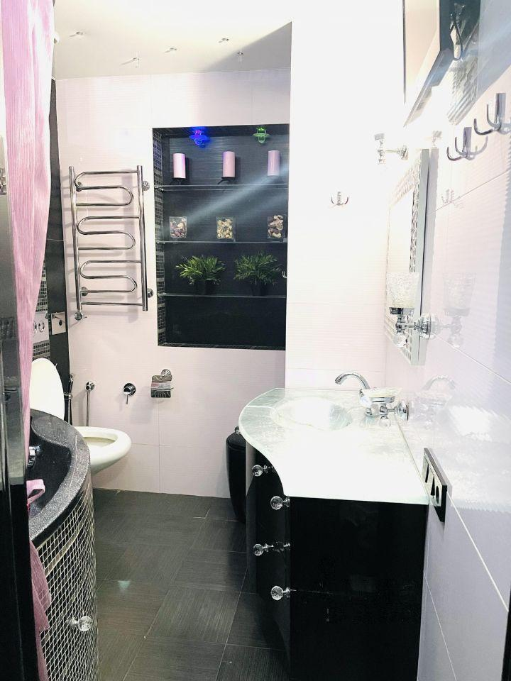 Две лоджии с подогреваемыми полами и встроенной мебелью. Два санузла . Один из них с большой красивой ванной. В квартире 4 кондиционера.