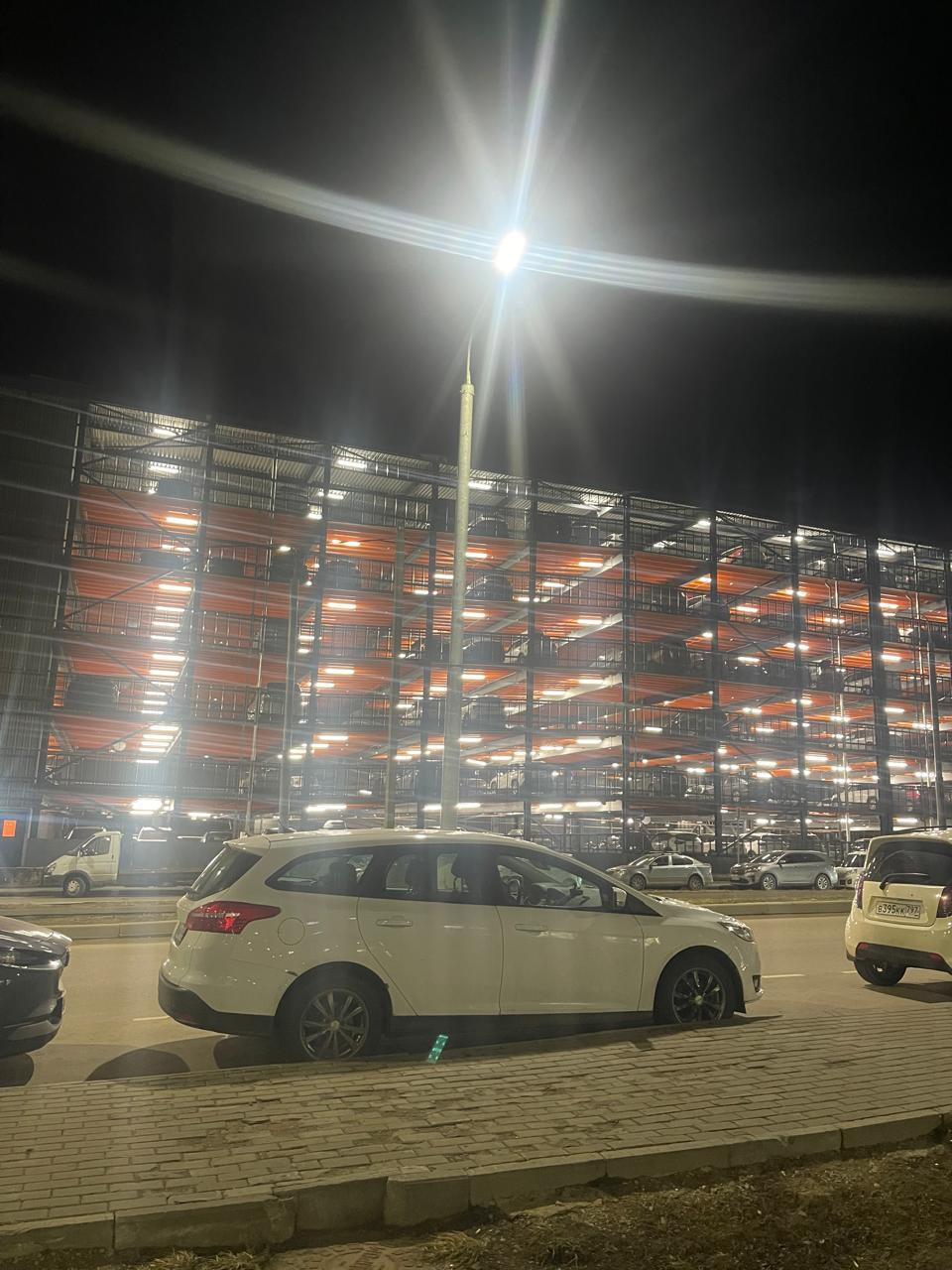 Рядом с домом находится многоуровневый паркинг.
