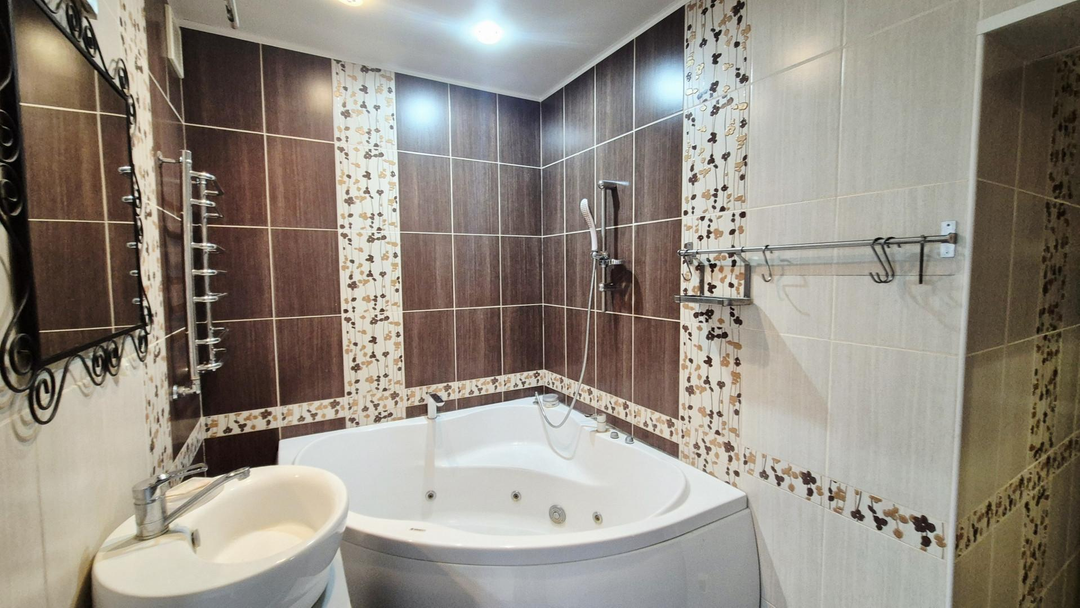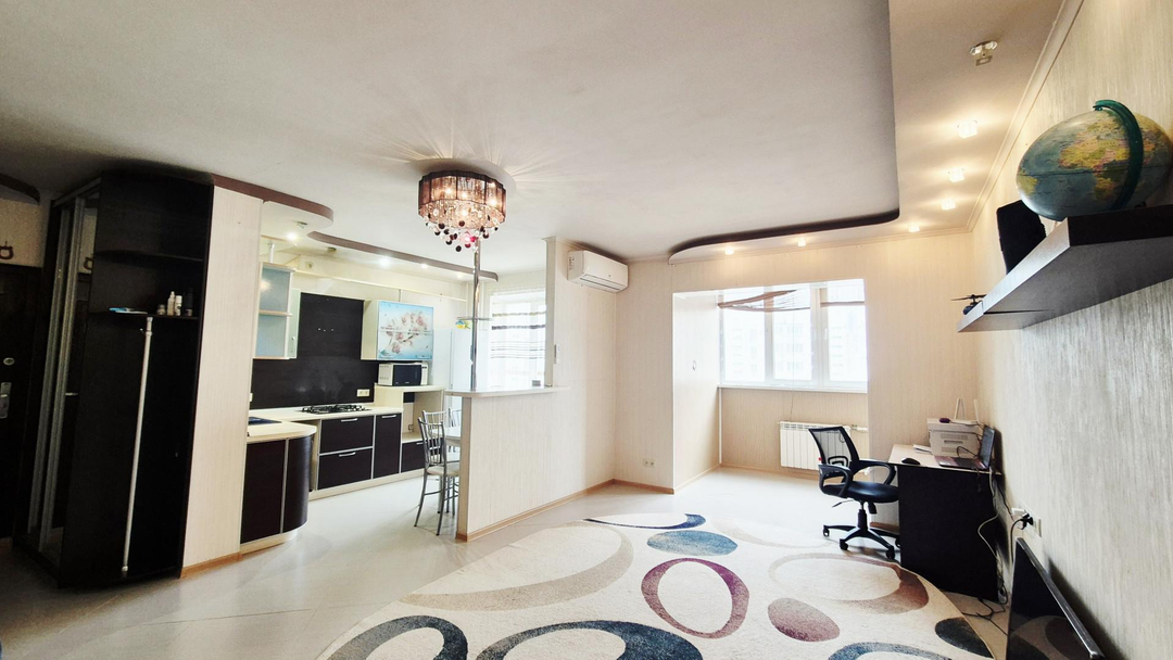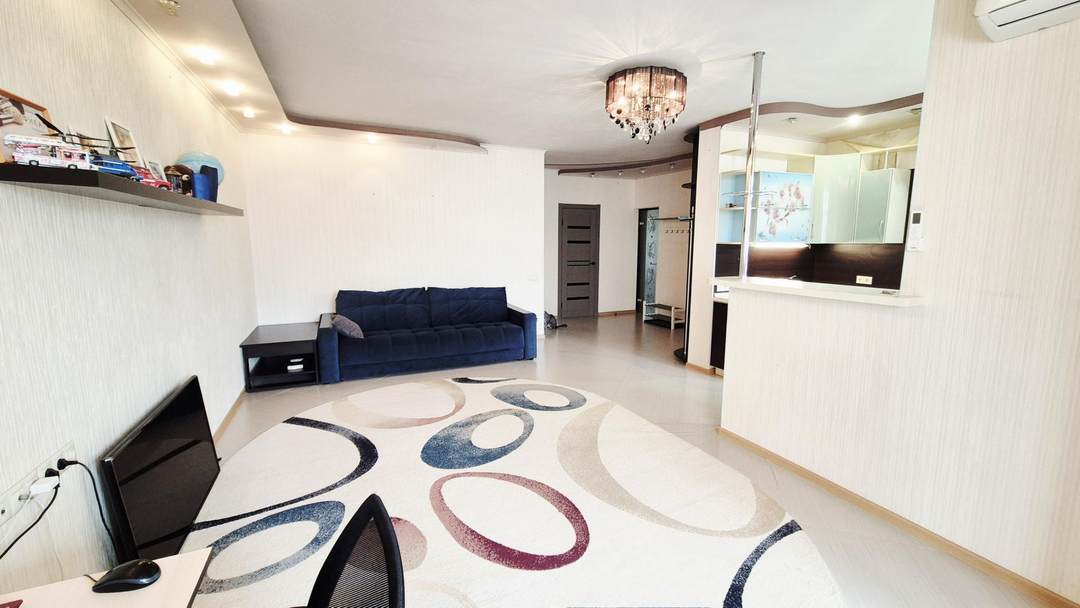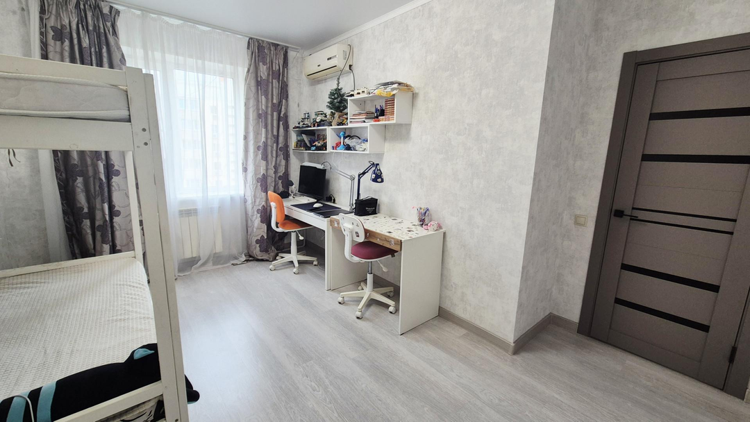 - имеется мебель: кухонный гарнитур, встраиваемая бытовая, 2 сплит-системы, стиральная машина, прихожая, полностью детская комната. В ванной комнате теплый пол. Перепланировка узаконена. В пешей доступности тц Три кота.