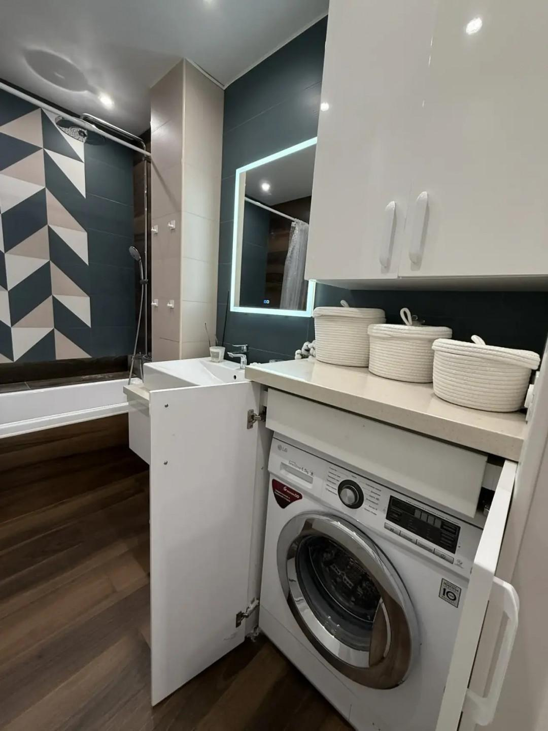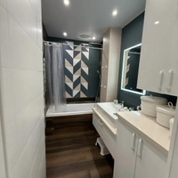 Квартира расположена на высоком этаже. Два балкона предлагают потрясающие панорамные виды: с одной стороны — живописная река, с другой — яркие огни города.