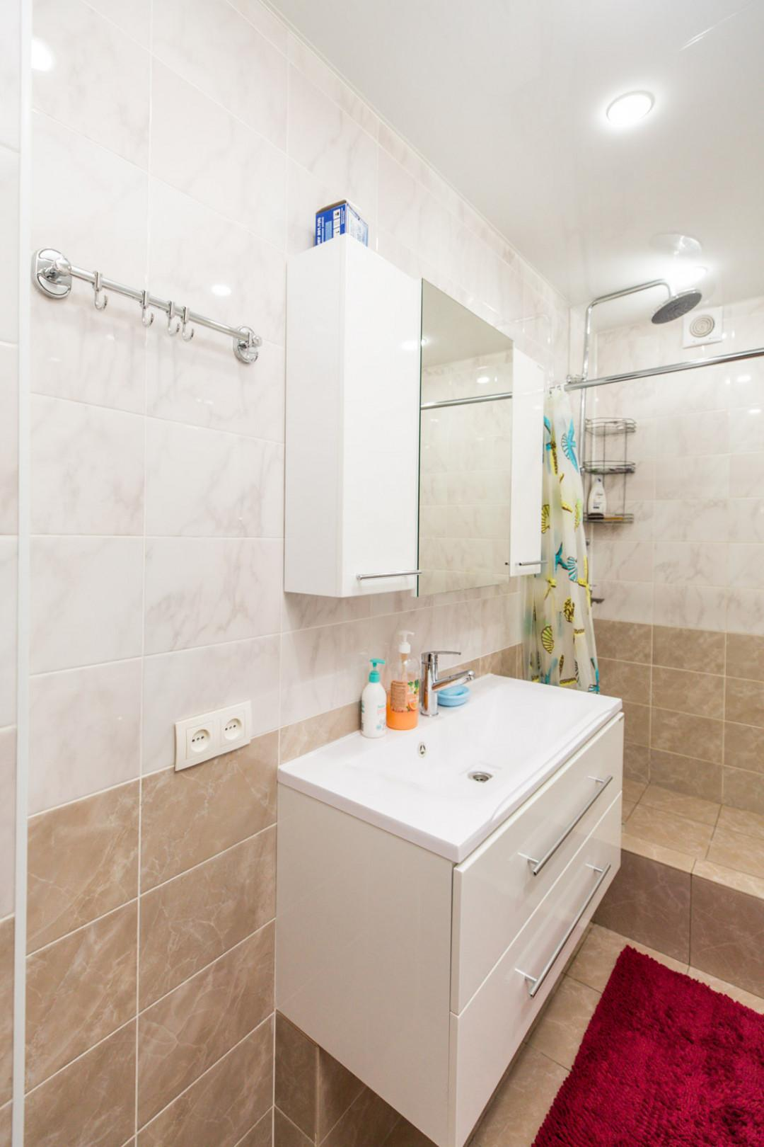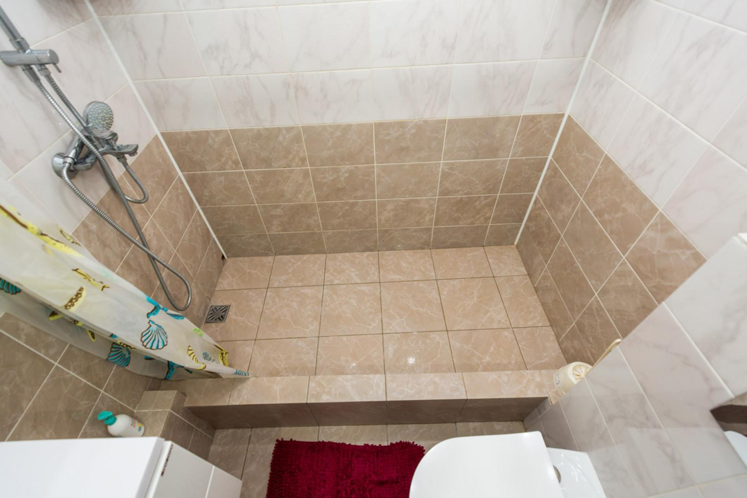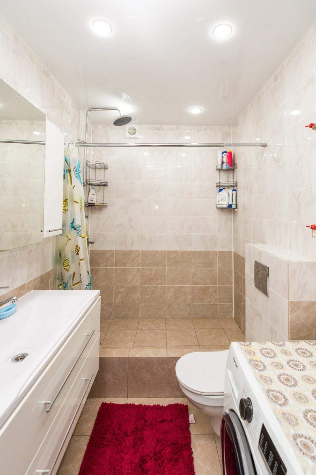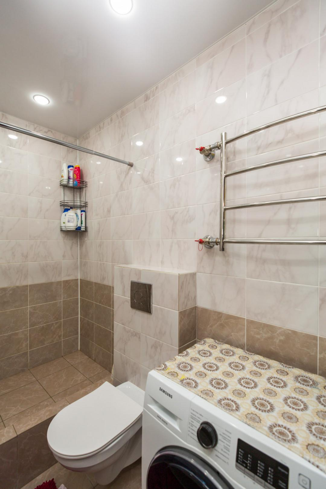 Санузел совместный (увеличен), облицован плиткой.