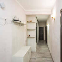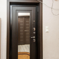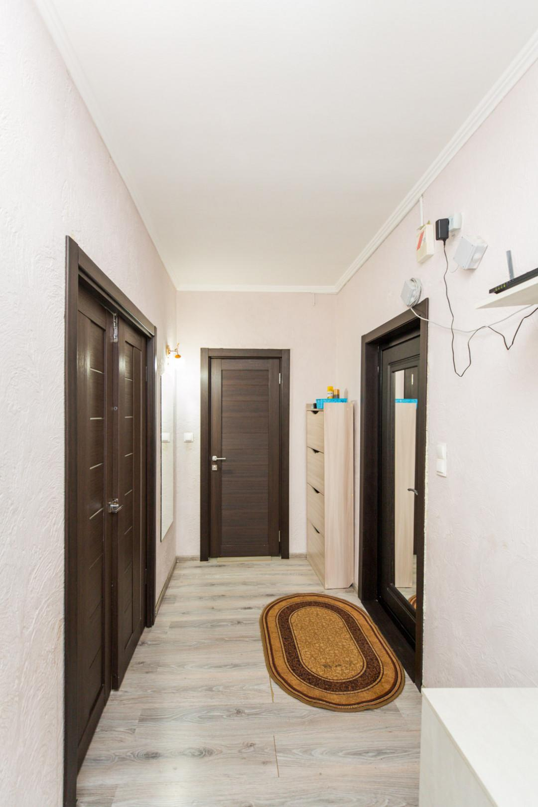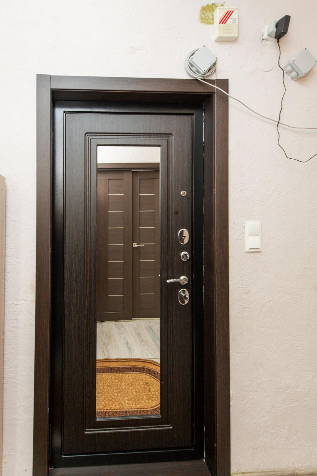 В коридоре установлен шкаф-купе с зеркалами.