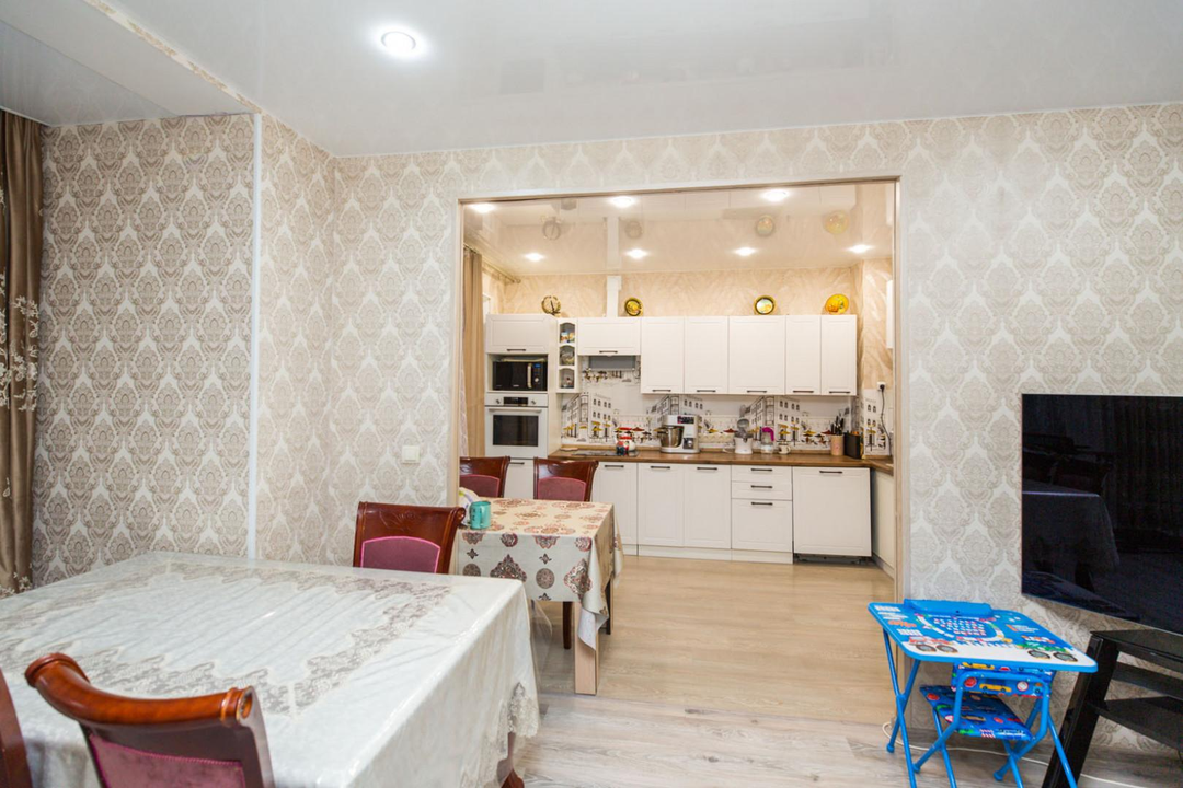 Продается светлая трехкомнатная квартира с просторной кухней-гостиной.