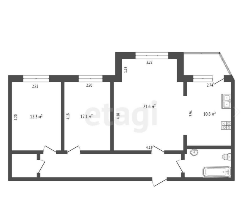 2 спальни. Предлагается оформить ремонт по своему вкусу.