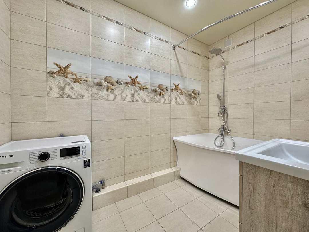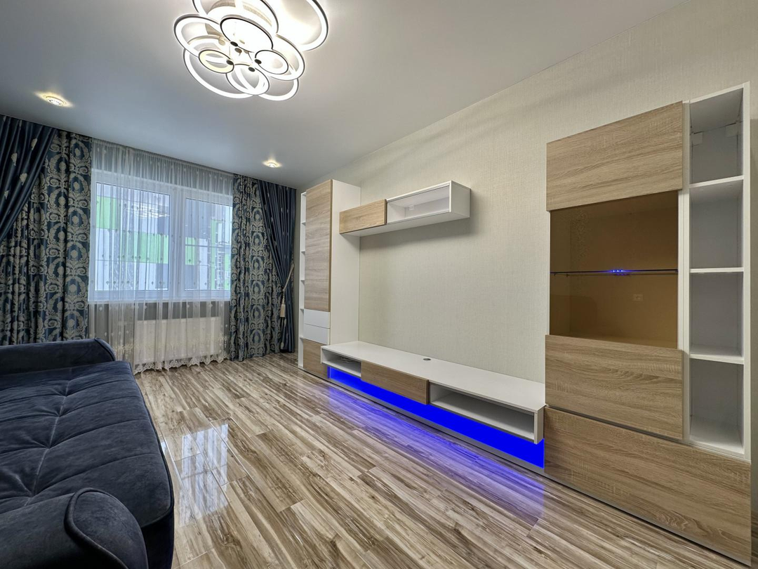 Отличное состояние, квартира оснащена всем необходимым для комфортного проживания, остается мебель и техника, а так же кухонный гарнитур, посудомоечная машина, варочная панель и вытяжка, холодильник.
