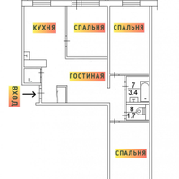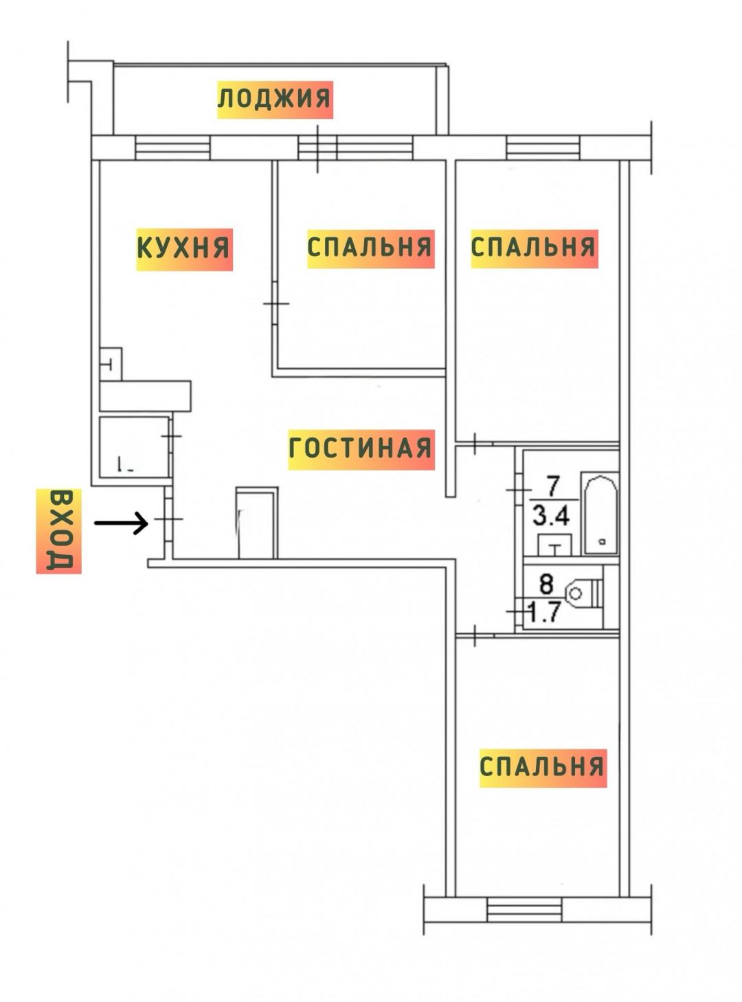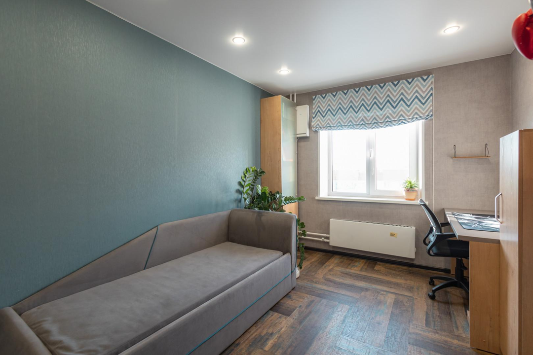 Перед нами классическая евро четырехкомнатная планировка: 3 уютные изолированные спальни, отдельная просторная гостиная и отдельная кухня. Ни одного бесполезного угла, все пространство работает на вас.