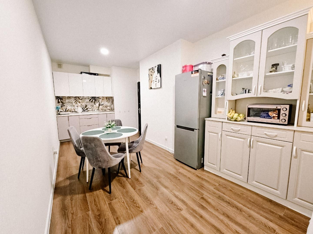 Квартира аккуратная, свежая, с качественным евроремонтом в нейтральных тонах — подойдёт под любой стиль.Планировка удобная: изолированная комната с выходом на лоджию, без проходных зон.Вся мебель остаётся — формат «заехал и живёшь».Окна выходят и во двор, и на улицу — хорошее естественное освещение в течение дня.О районе, инфраструктуре и транспорте