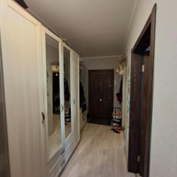 В квартире остается мебель: кухонный гарнитур, полный комплект мебели для прихожей, шкафы в ванной комнате и спальне, детская кровать и диван.