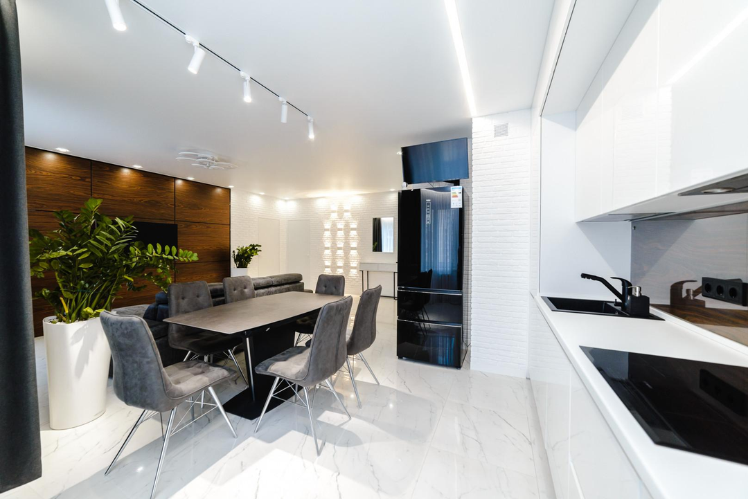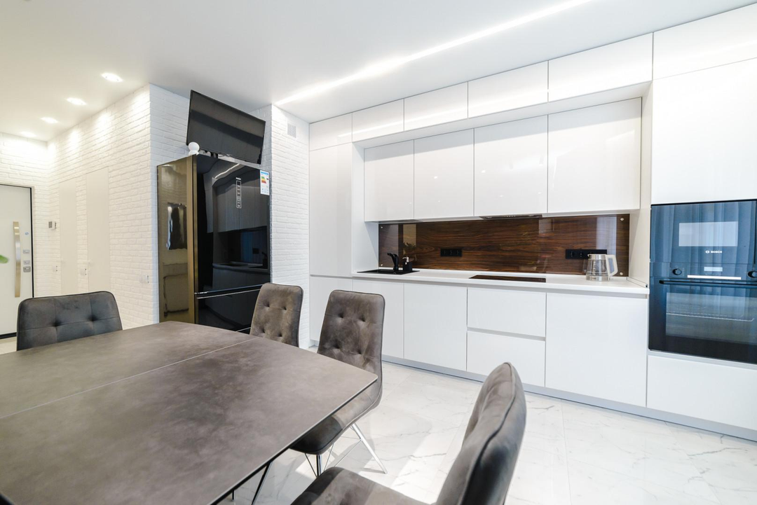 Вашему вниманию хотелось бы представить квартиру в современном дизайне. В данном ремонте постарались воплотить и реализовать все пожелания заказчика. Ремонт сделан из высокого качества отделочных материалов и грамотными специалистами. Постарались продумать все до мелочей .