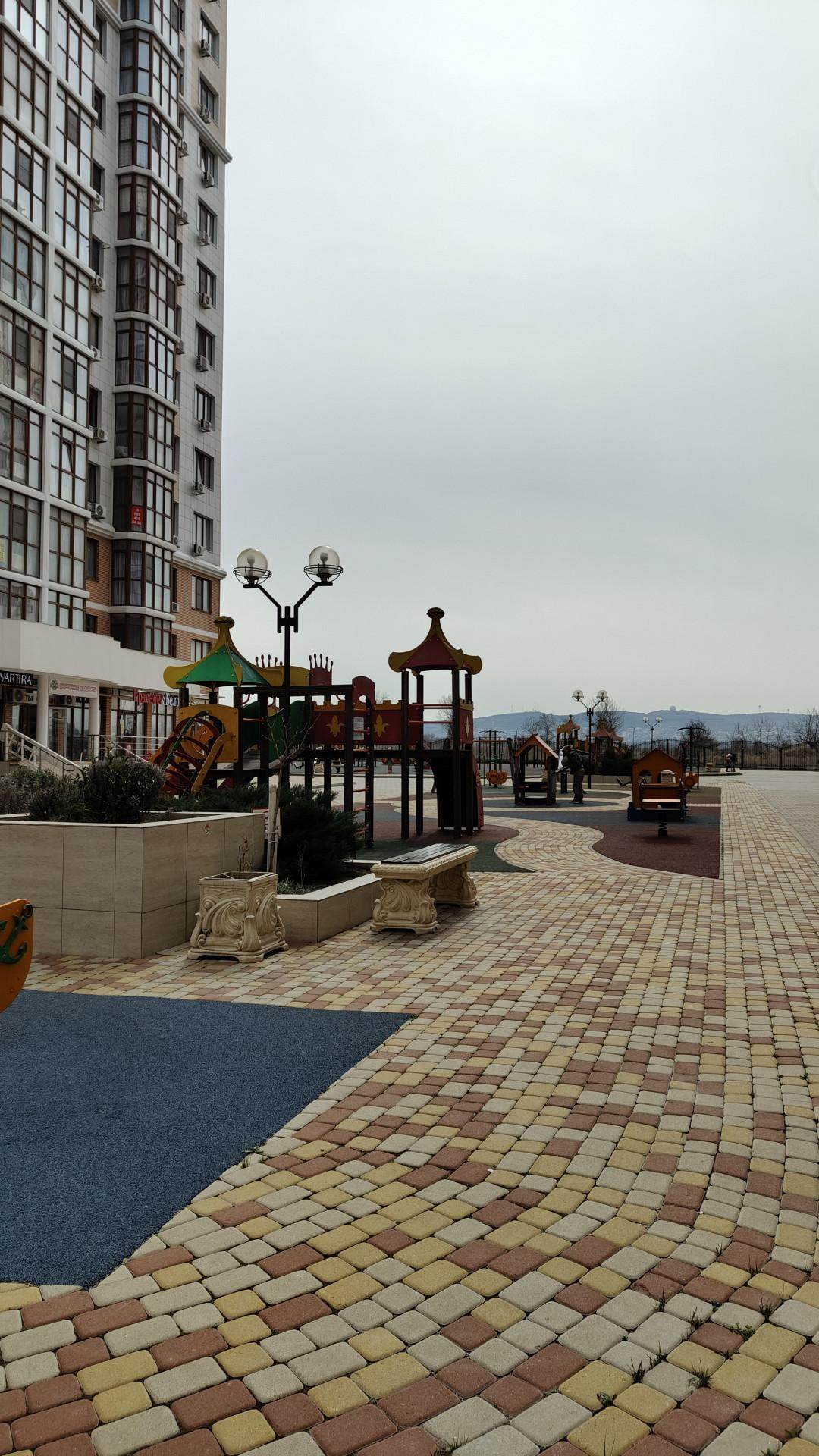 На территории есть своя аллея с фонтаном, детские игровые площадки, спортивные тренажеры, муниципальный и частный садик, зоны барбекю, закрытая территория (двор без машин).