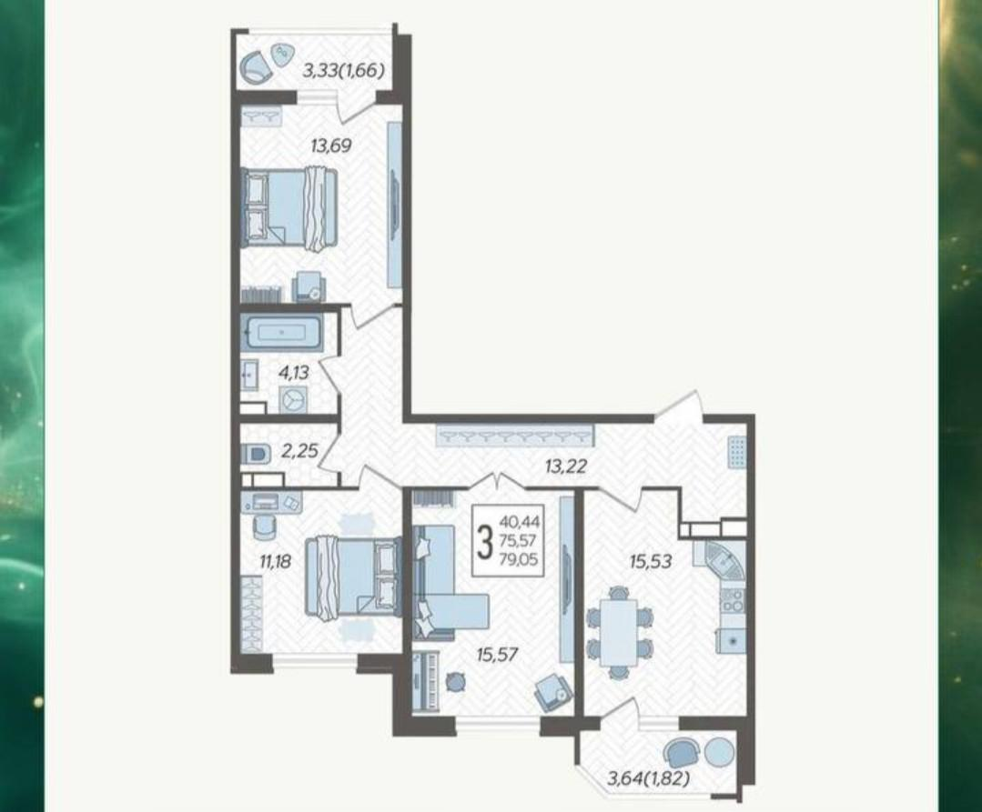 • Общая площадь 79 м²