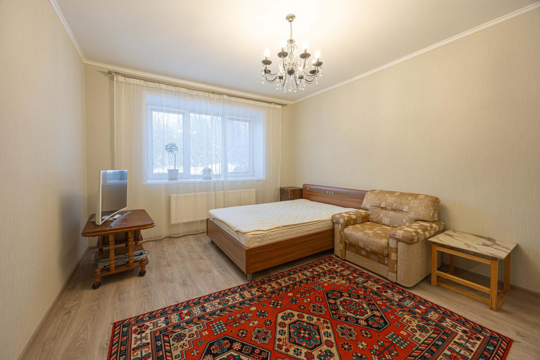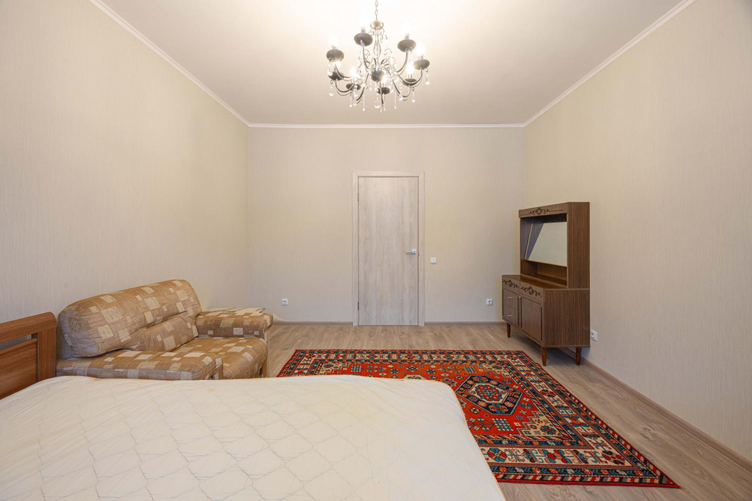 - вторая комната 13 м. она с гардеробной, остается кровать , шкаф для одежды и шкаф книжный,
