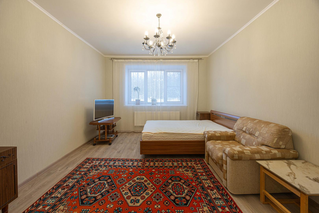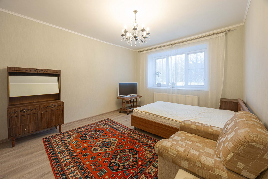 - одна комната 18 м. в ней остается кровать + диван,