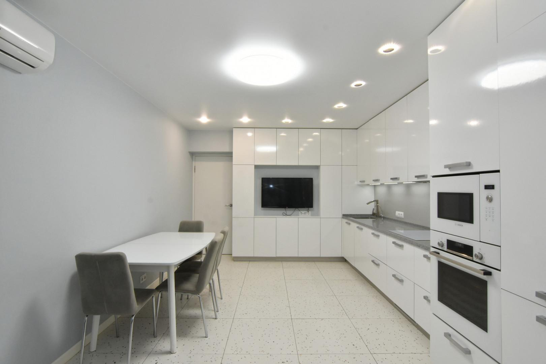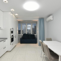 Состояние отличное. В квартире выполнен законченный Еврo-peмoнт по дизайн проекту: керамогранит, ламинат, обои под покраску, керамическая плитка, натяжной потолок. Установлены: пластиковые окна, межкомнатные и входные двери, люстры, точечные светильники, бра и др. Отличная планировка: просторная кухня-столовая, три спальни, раздельный сан.узел, утепленный балкон. Квартира теплая, светлая, окна выходят на две стороны;