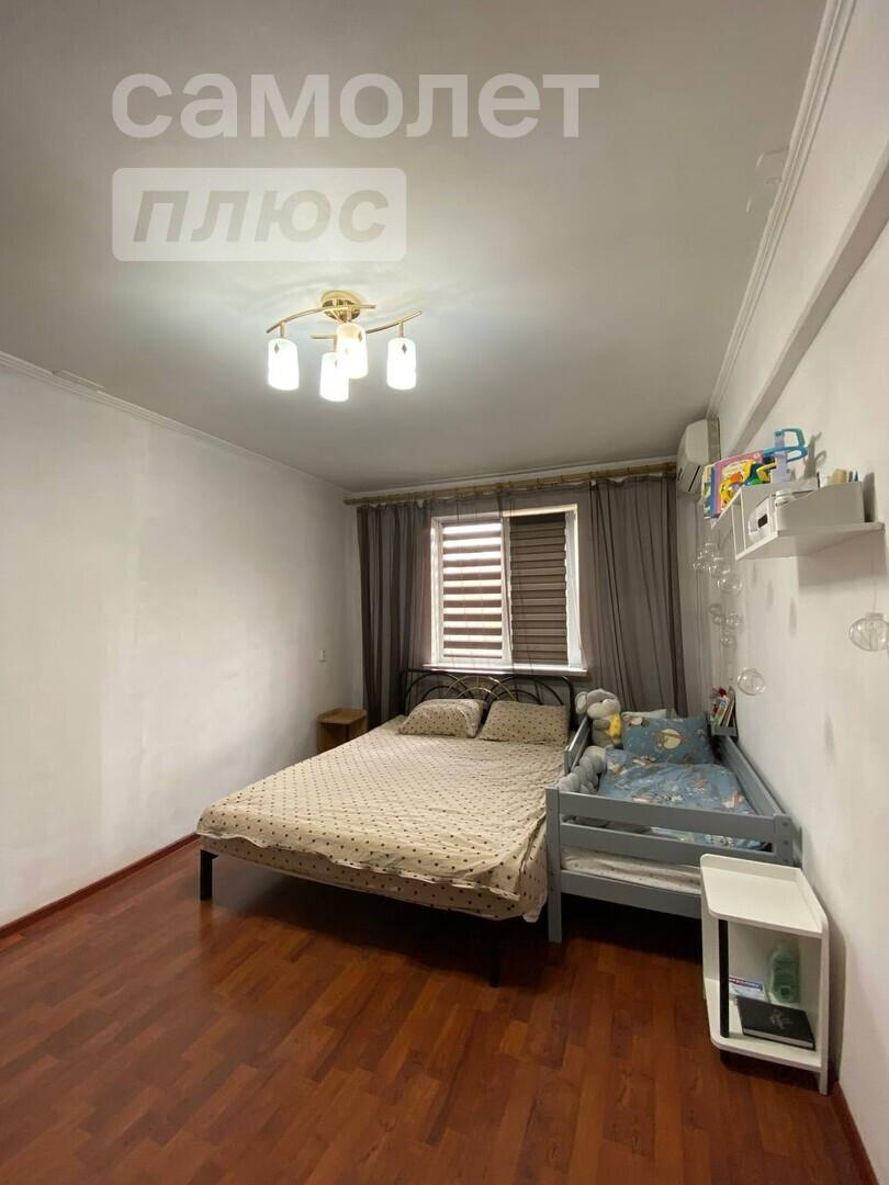 Уютная трёхкомнатная квартира с кухней-гостиной 20 кв. метров. В квартире установлено 2 кондиционера, что поможет спастись от летнего зноя. Окна пластиковые, выходят на обе стороны. Натяжные потолки, на полах ламинат и плитка высокого качества. На стенах качественные обои, ремонт был сделан в 2022г.Санузел совмещенный, просторный 4 кв. метра
