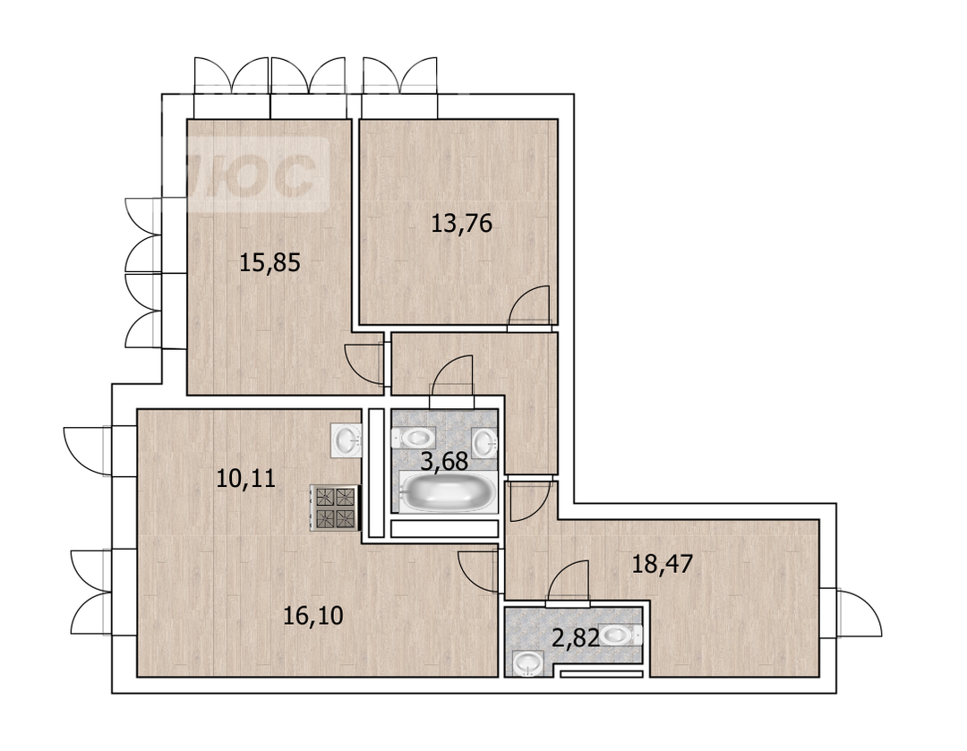 Трехкомнатная квартира, расположенная по адресу: проспект Октября, 75