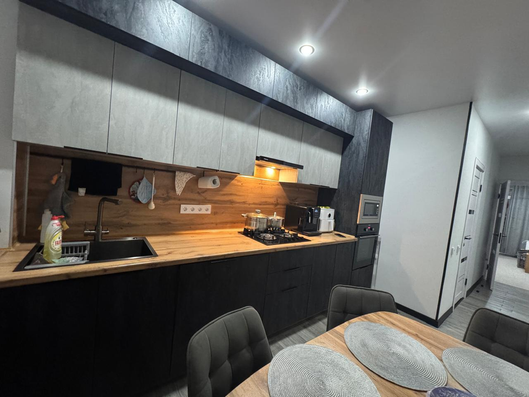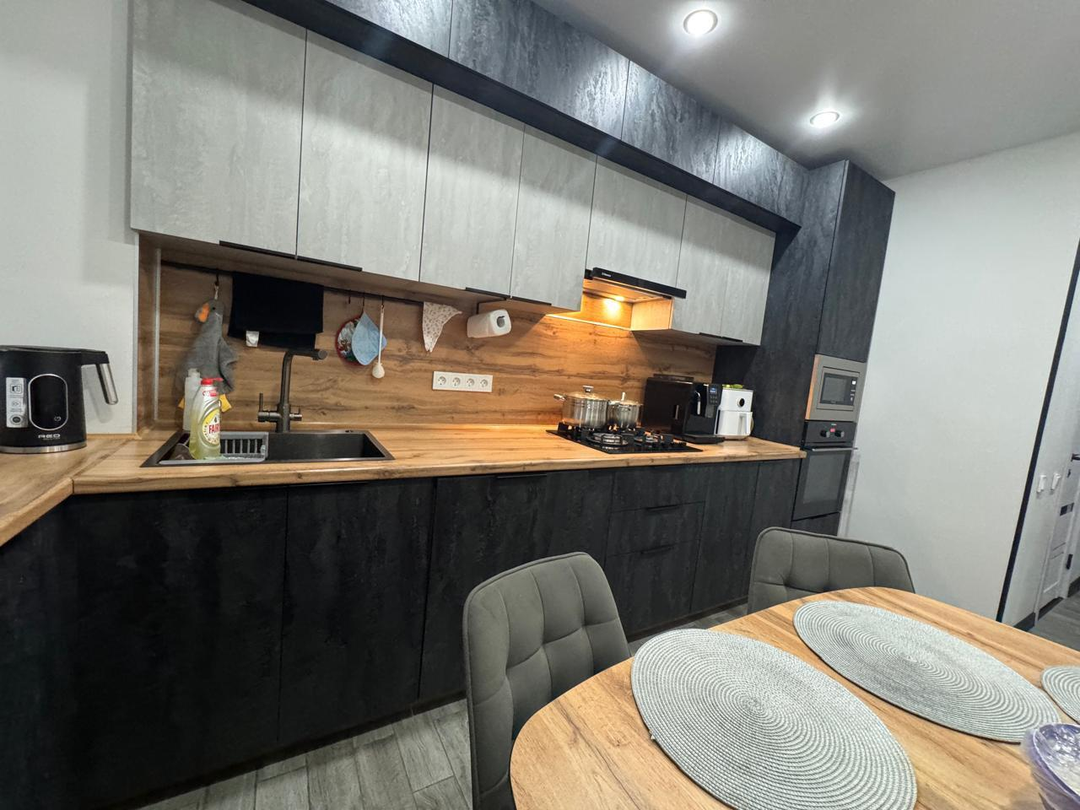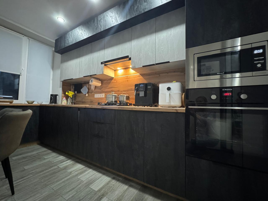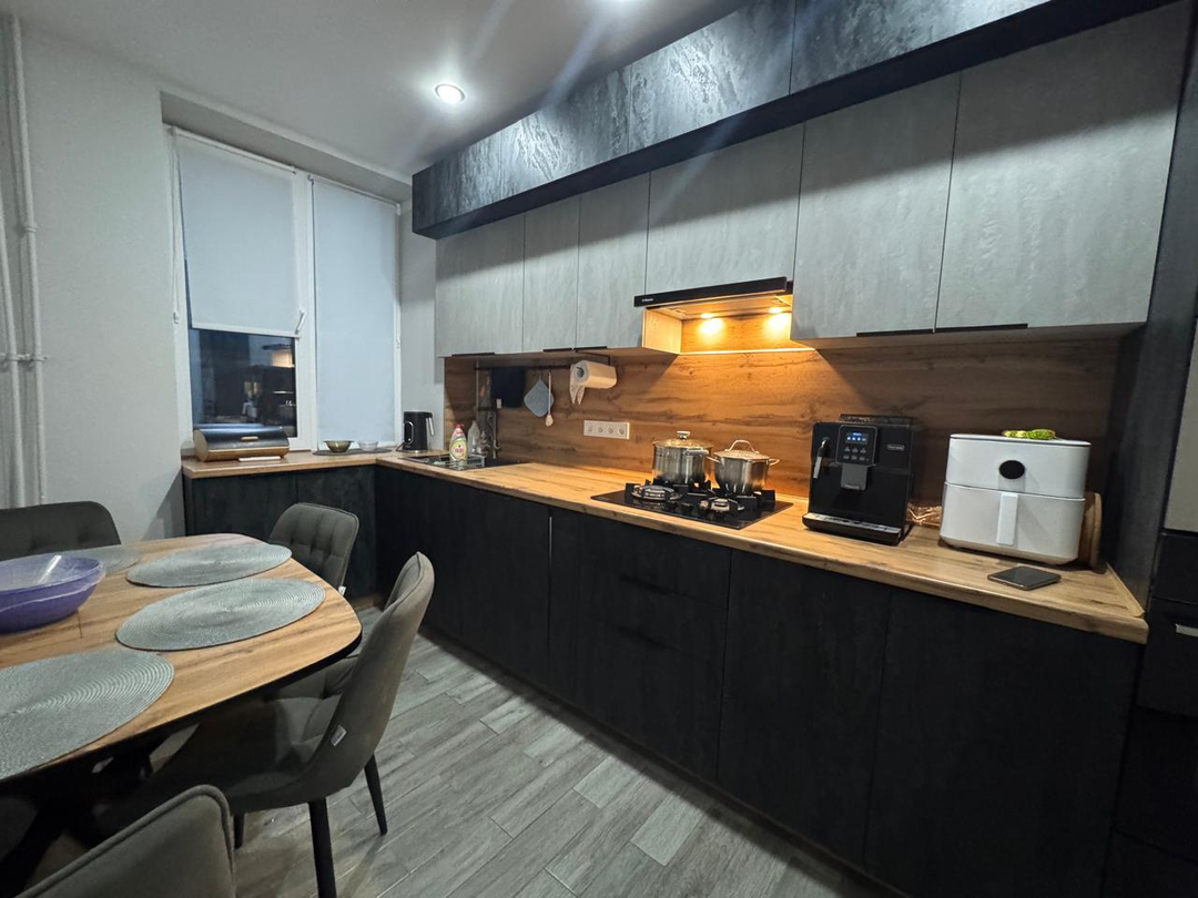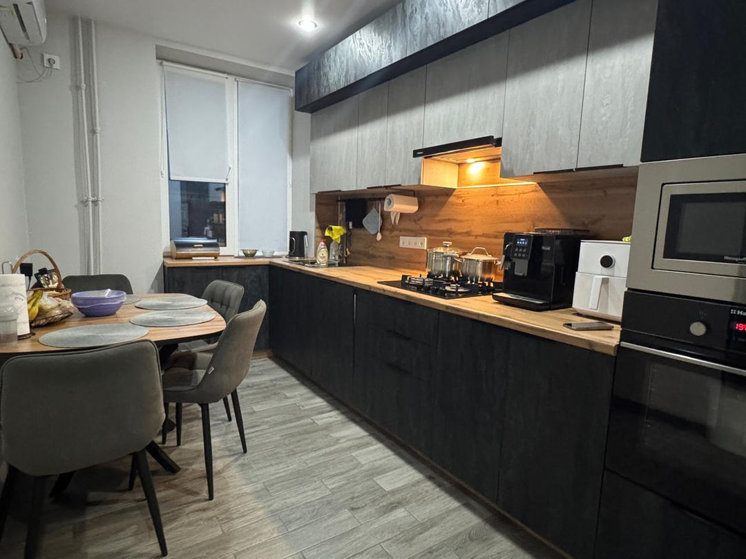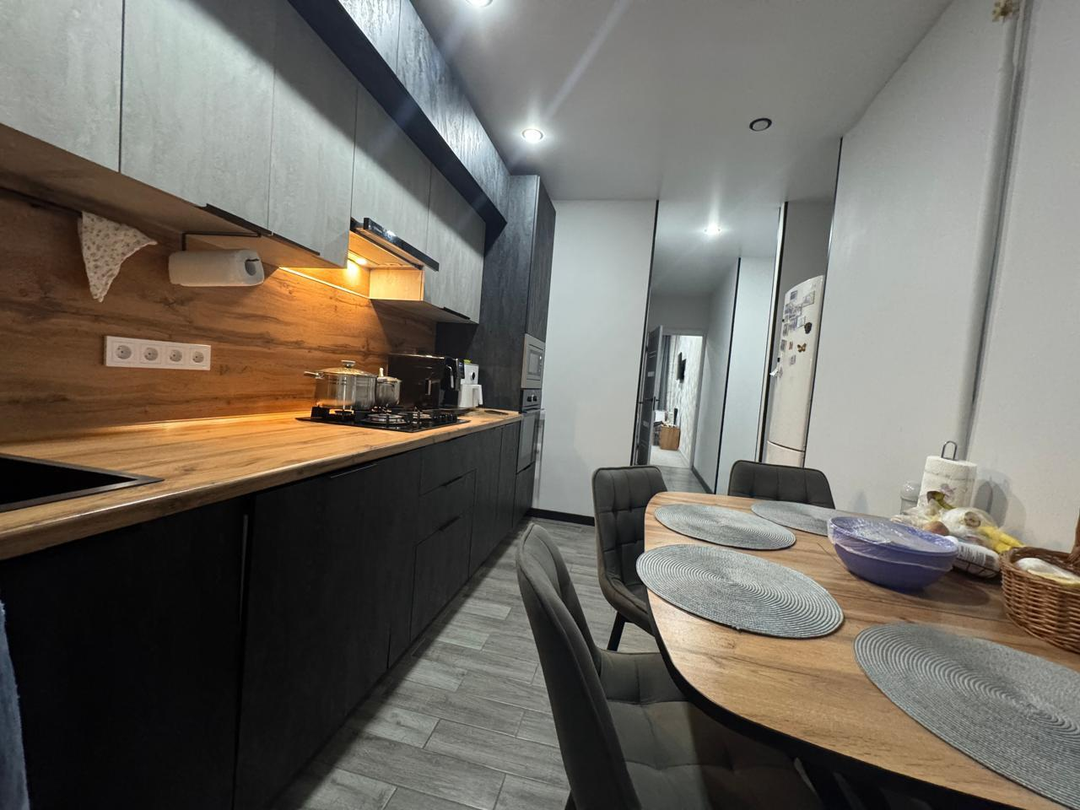 Квартира после капитального ремонта. Полностью заменена проводка, сантехнические трубы, выровнены и залиты полы, установлены пластиковые окна. Ремонт в квартире выполнен в светло-серых тонах из дорогих качественных материалов. Ремонт делали для себя, на материалах не экономили. Вся корпусная мебель выполнена на заказ. Квартира очень просторная и стильная. Все комнаты раздельные, два балкона.