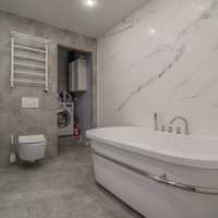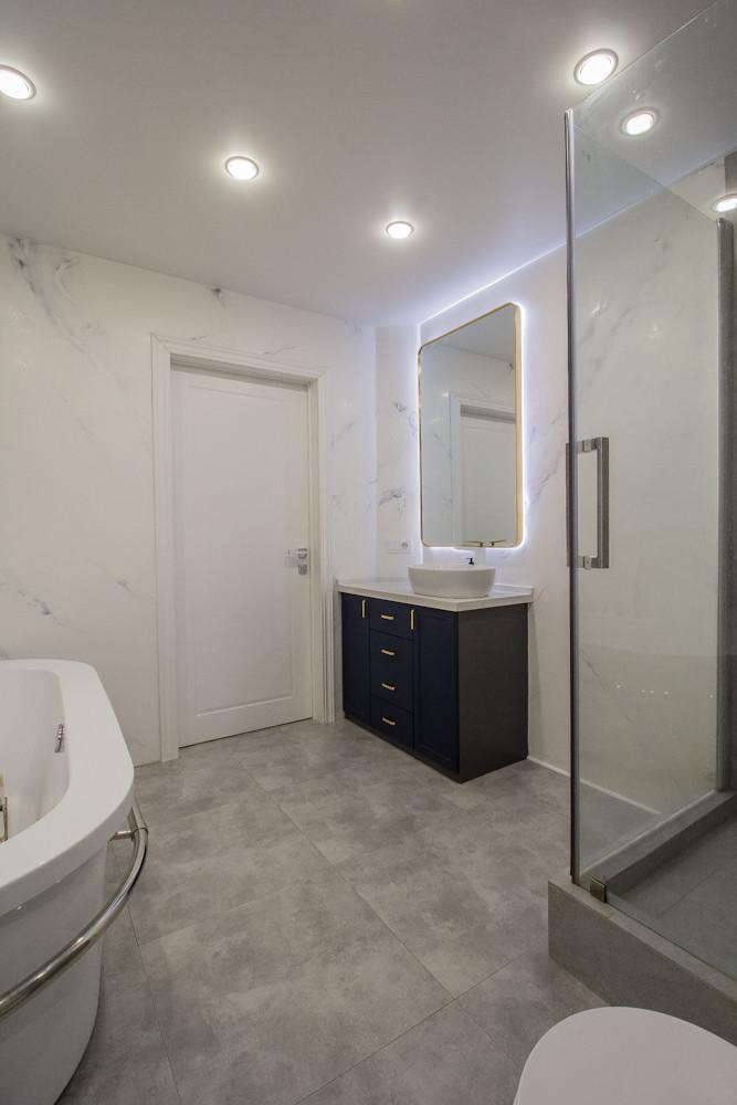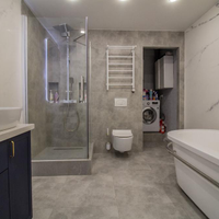 + Просторный санузел (9 кв.м) с качественным кафелем, зонированным местом под стиральную машинку и водонагреватель, в санузле и душевая кабинка и ванная