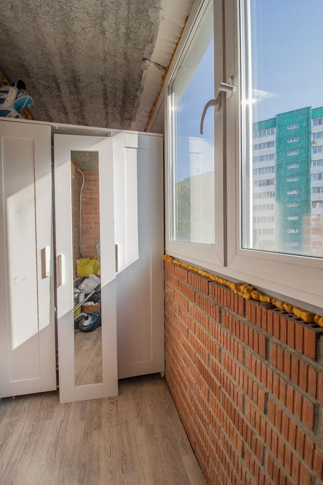 + Балкон застеклен ( 6 кв.м), балкон на две комнаты ( стоит шкаф, тем самым разделяет его)