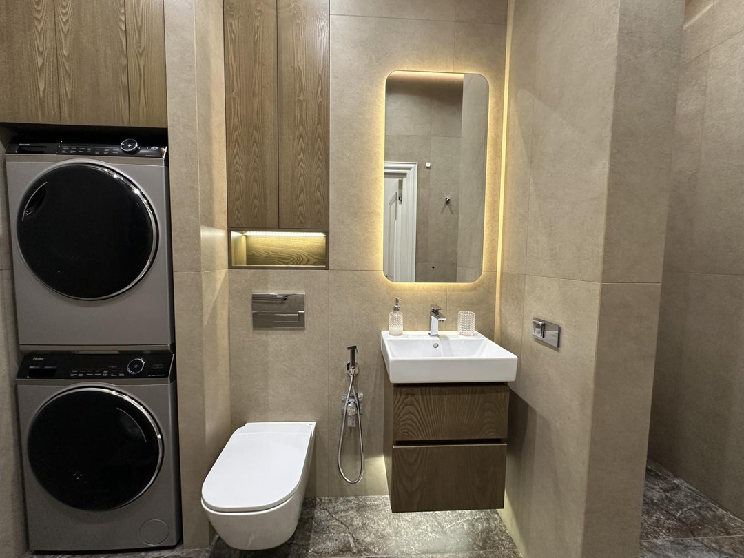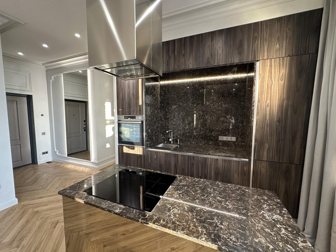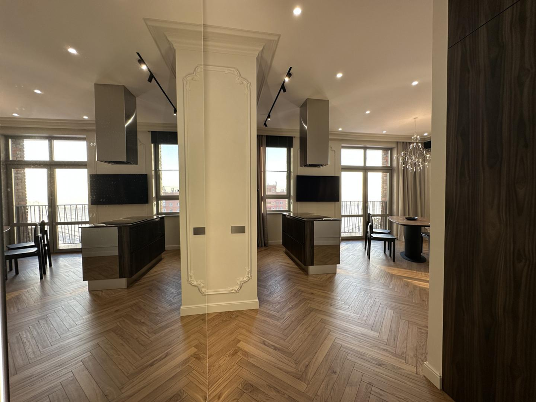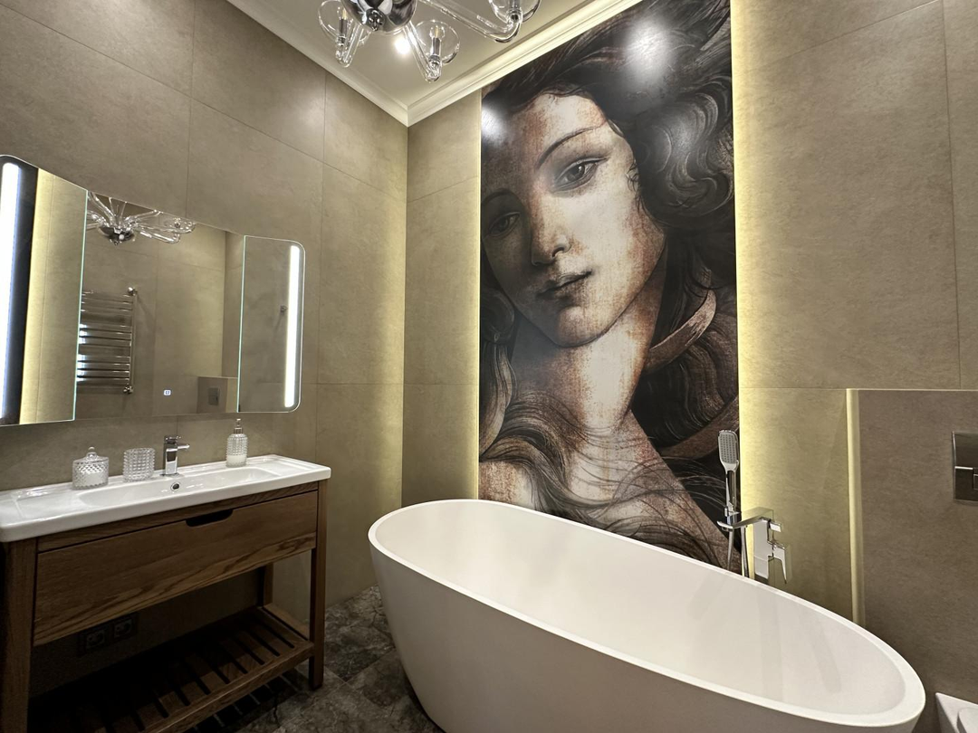 Дизайнерский ремонт выполнен под авторским надзором из премиальных материалов при соблюдении всех технологий.