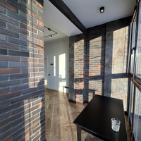 Малая комната с панорамным остеклением в пол на всю ширину, и предусмотренным обогревом примыкания к стене, выложенная кварцвинилом на пробковой подложке с системой управления освещением со смартфона, позволяет наслаждаться видами на Ангару с высоты 15 этажа.