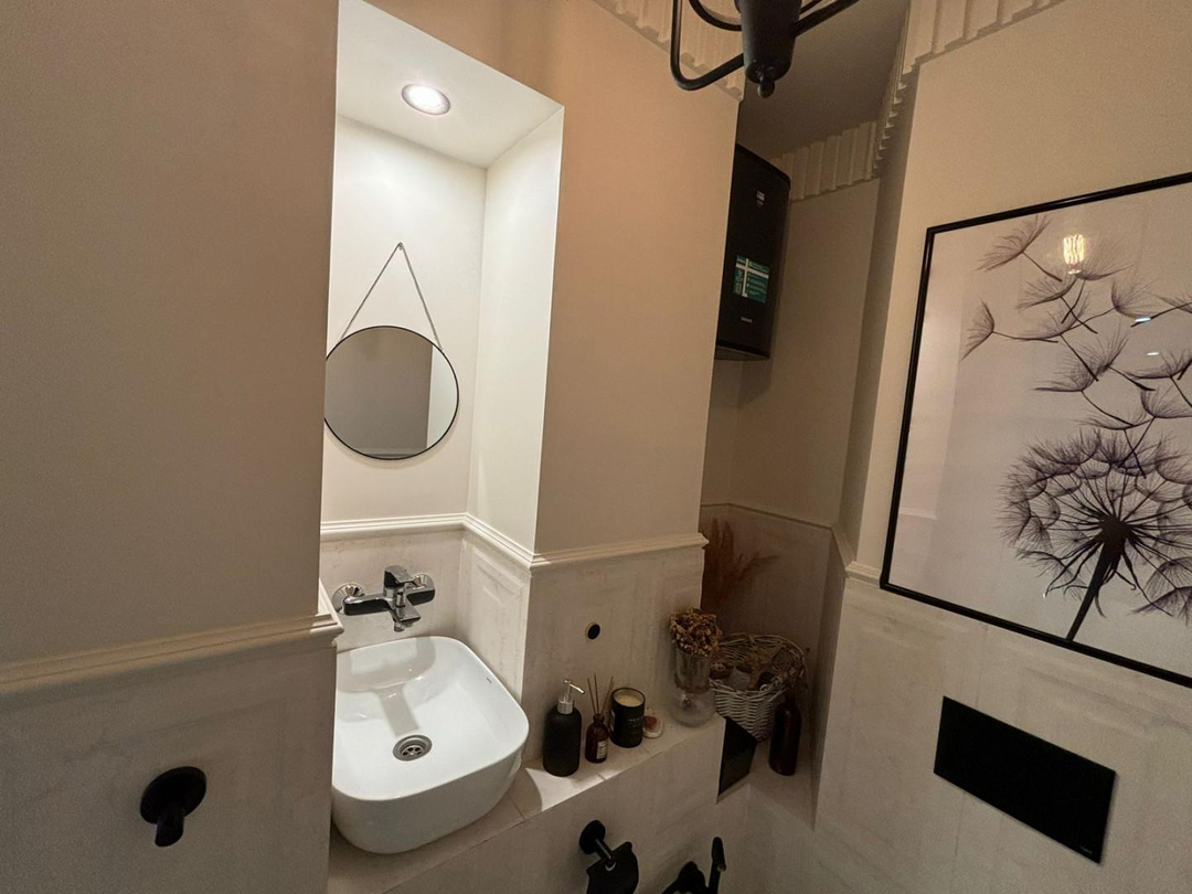Электрика разведена очень грамотно, каждая подгруппа отдельно, с системой защиты. Сантехника также разведена по последним технологиям, с датчиками давления, фильтрами. Установлен бойлер на 100 литров. Потолки отштукатуренные и выполнены профессиональными мастерами вручную. Вместительные встроенные шкафы, кровать с подъемным механизмом, двери МДФ, качественная входная дверь. Почти вся мебель и техника остается новым собственникам, заезжай и живи.