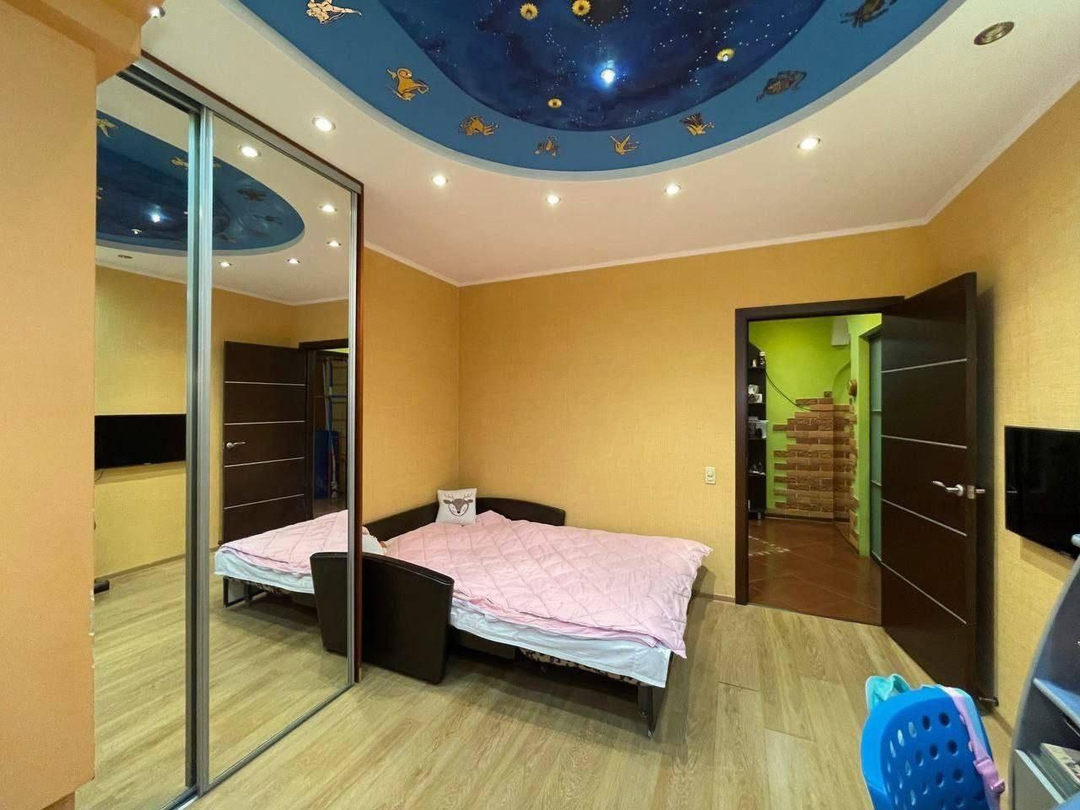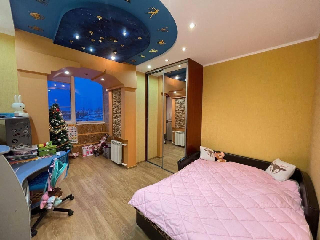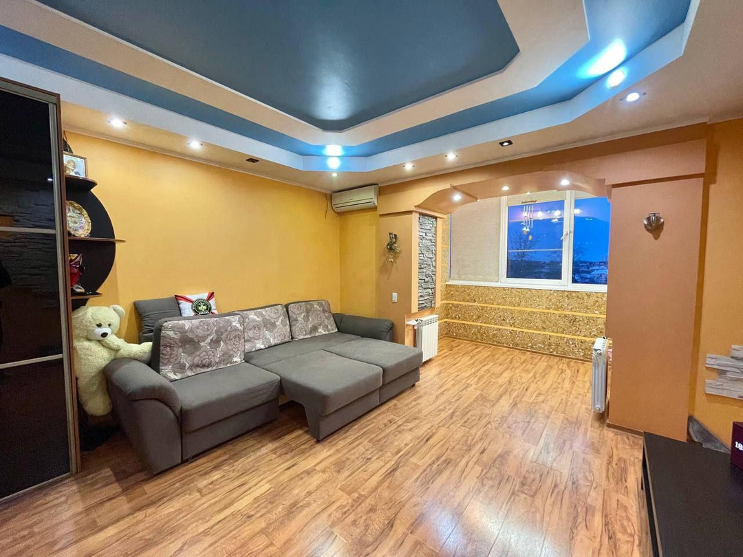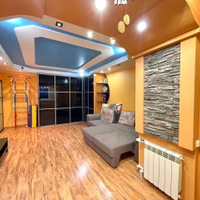 Состояние: Выполнен качественный евроремонт. Продуманный дизайн интерьера. Потолки: Многоуровневые конструкции из гипсокартона в комнатах и коридоре. На кухне — стильный глянцевый натяжной потолок (легко моется, визуально увеличивает пространство). Стены: Комбинированная отделка: уютные обои под покраску в сочетании с декоративным камнем. В прихожей камень также присутствует на стенах, что очень практично. Полы: В прихожей уложена качественная плитка. В комнатах — износостойкий ламинат. Кухня: Отдельного внимания заслуживает кухня. Установлены теплые полы. Имеется полноценная кухонная мебель (гарнитур). Мебель: Квартира продается полностью меблированная. Вам не нужно покупать шкафы, кровати и диваны — можно заезжать сразу после сделки. Балконы: На балконах также сделаны теплые полы (отличное место для хранения или зоны отдыха). Климат-контроль: установлены кондиционеры