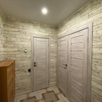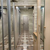 Общая площадь 84,3 м² спланирована так, чтобы максимально разгрузить жилые зоны. Три изолированные комнаты дают возможность организовать спальни, детские или кабинет. Длинный коридор с глубокими встроенными шкафами полностью берет на себя хранение вещей — в комнатах остается только простор. Точка притяжения квартиры — кухня площадью почти 20 кв. м. Здесь легко размещаются зона готовки, полноценная столовая и место для отдыха.