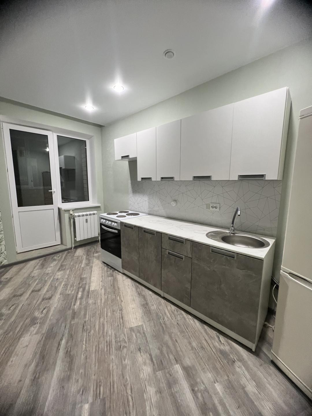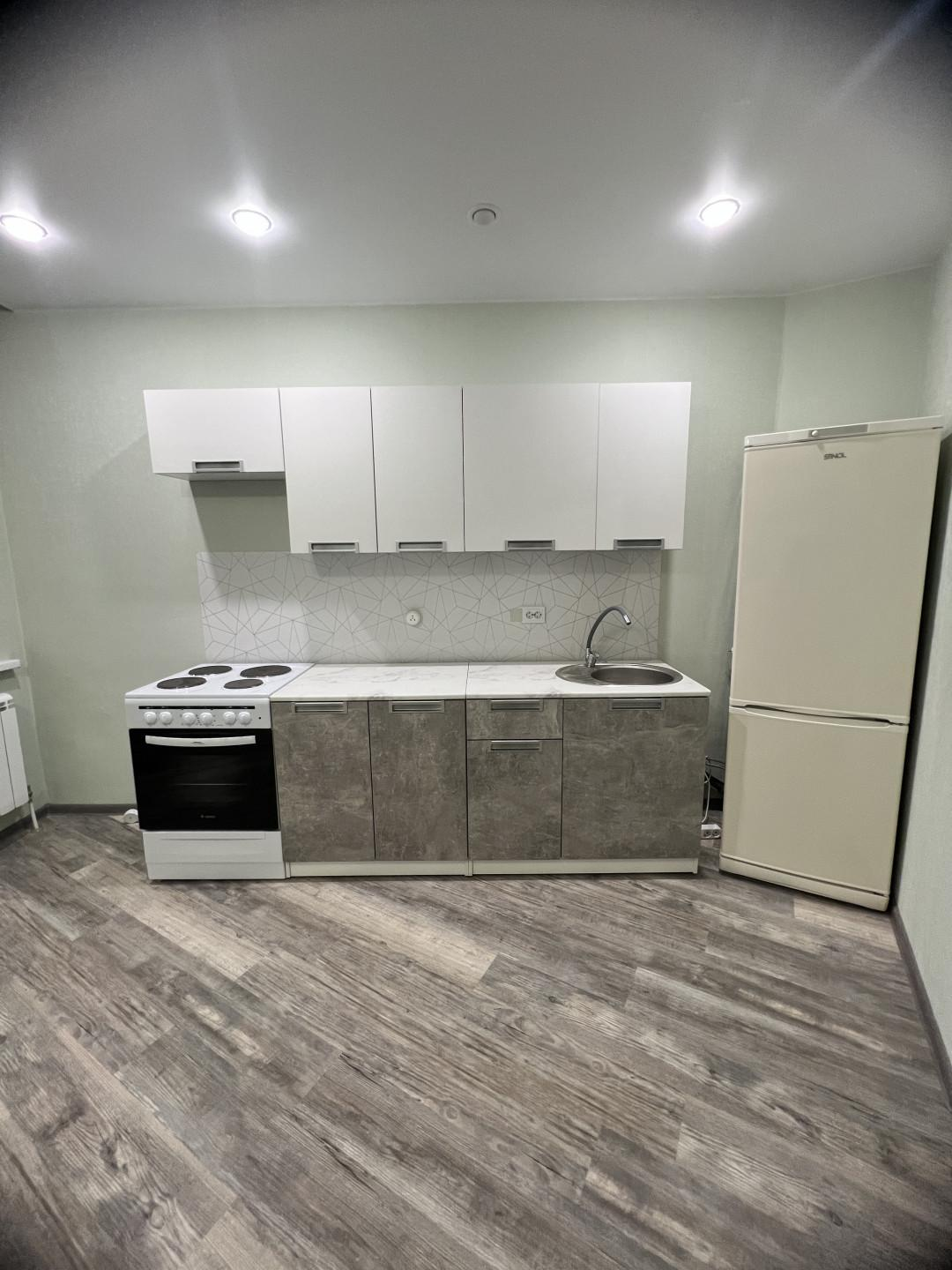 В квартире никто не жил. Из мебели есть: кухонный гарнитур, электрическая плита, холодильник. Заходи и живи, ничего делать не надо!