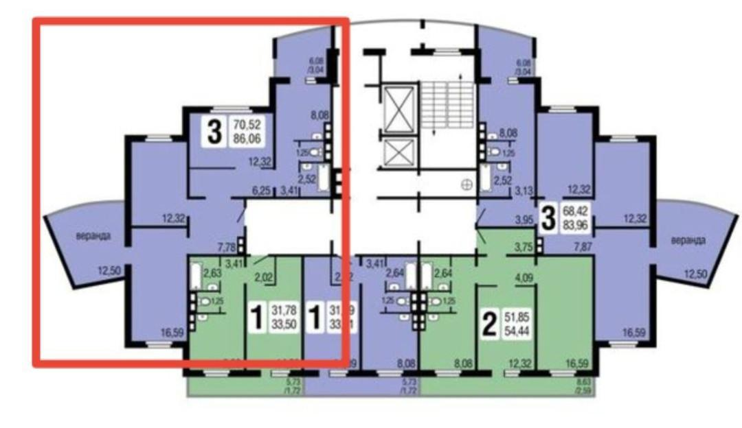 Трехкомнатная квартира общей площадью по ЕГРН 70,5 м², по факту 81,32 кв. м теплой площади!)