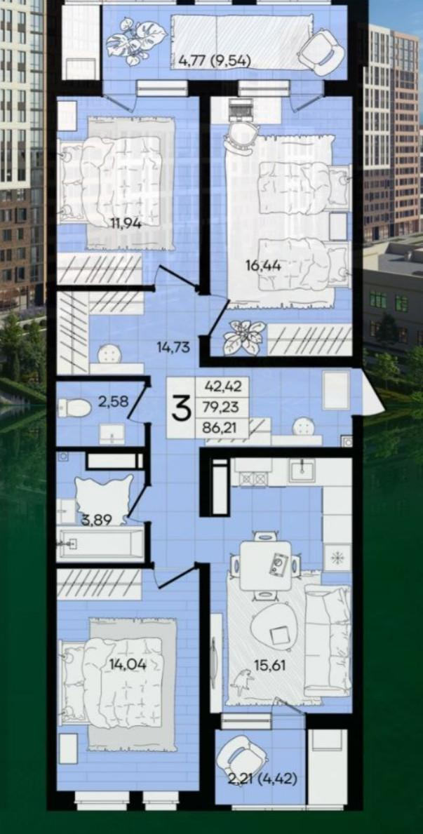 3х комн 86,21 кв.м