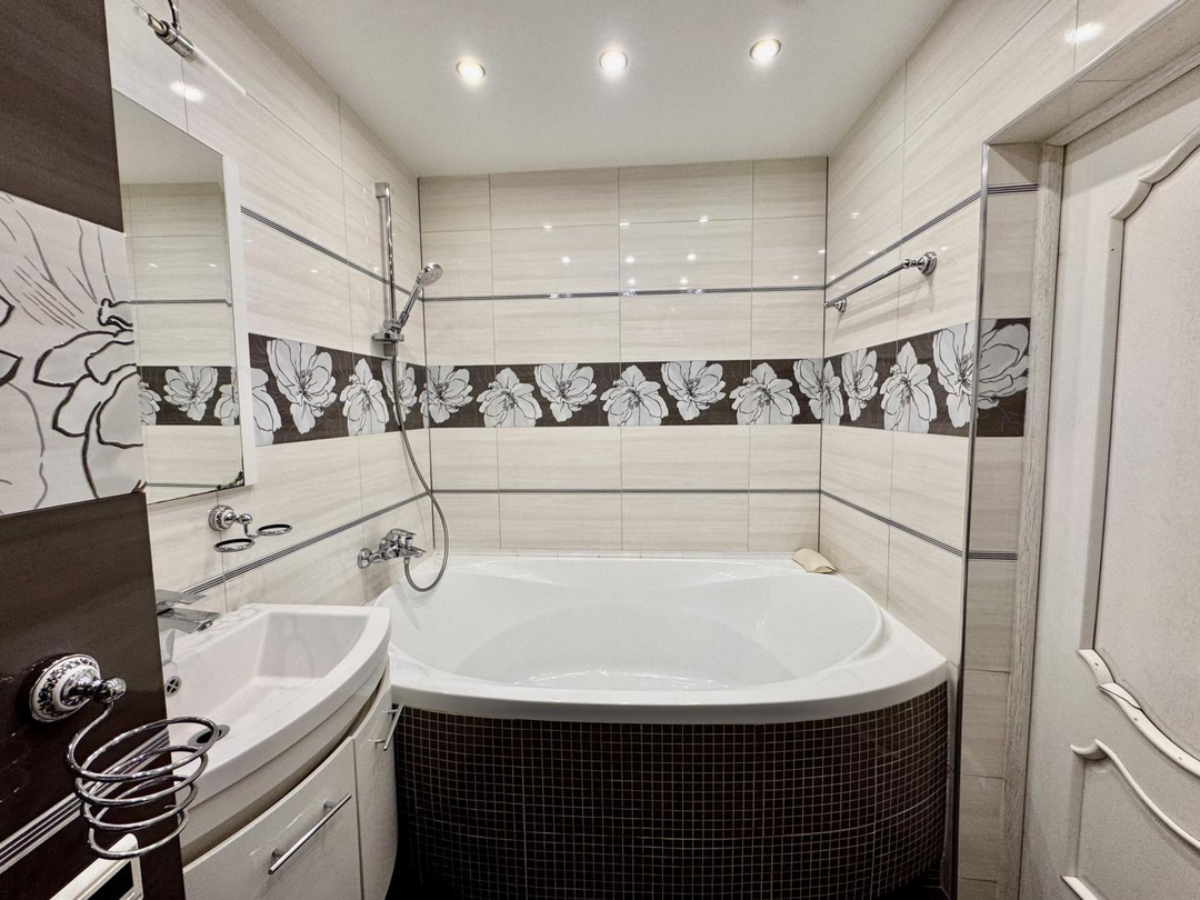 - совмещенный санузел, в кафеле, огромная ванная, раковина, стиральная машина,