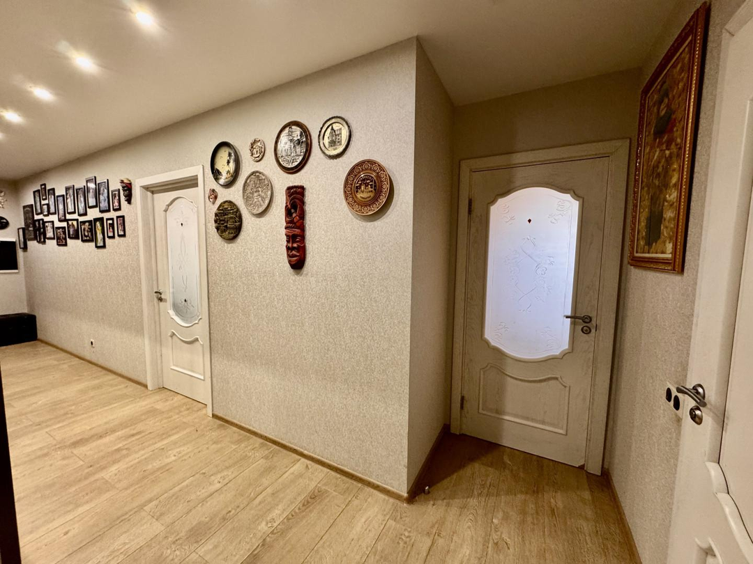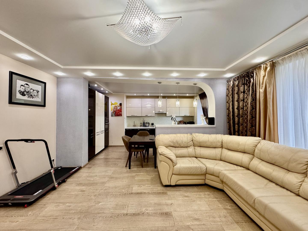 Продается просторная, видовая евро 3-х комнатная квартира, расположенная ЖК «Сосновка» в тихом, спокойном районе Климовска по адресу: Больничный проезд, д.2 к.1. Квартира расположена на 15 этаже 17 этажного монолитно-кирпичного дома, год постройки 2014 г. Общая площадь квартиры 86,9 м2, жилая 47 м.кв., огромная кухня-гостиная 20 м.кв. Застекленная лоджия. В квартире сделан качественный ремонт по дизайн-проекту, делали для себя, использовались качественные материалы высокого класса, в комнатах натяжной потолок с встроенными светильниками. Квартира оснащена мебелью и техникой по индивидуальному проекту: кухонный гарнитур с встроенной техникой, обеденная зона, зона отдыха с угловым диваном, в большом коридоре оборудованы встроенные шкафы, в спальне – большая кровать, прикроватные тумбы, в детской комнате: двух ярусная кровать, рабочий стол, шкаф. Чистый подъезд, хорошие соседи. Из окна открывается живописный вид. Во дворе оборудована детская и спортивная площадки, растут кустарники и деревья, всегда есть парковочные места. Дом находится в центре Климовска, отличная развитая инфраструктура. До МКАД 23 км, доехать на личном и общественном транспорте можно за 20-25 минут по Варшавскому или Симферопольскому шоссе.