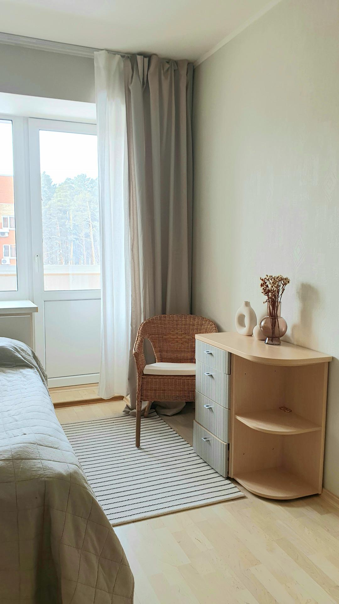 Квартира находится в шестиэтажном кирпичном доме, всего в 300 метрах от живописного озера Еловое.