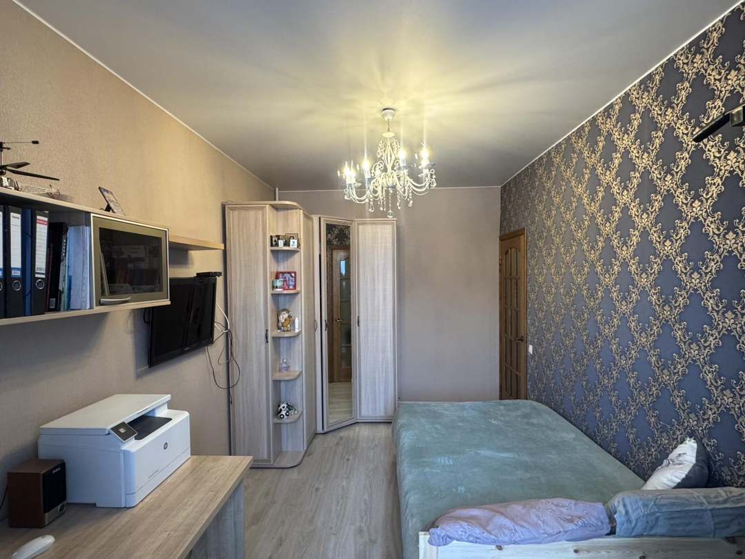Произведена замена проводки, пол - стяжка/покрытие кварцвинил, стены выровнены и оклеены обоями.