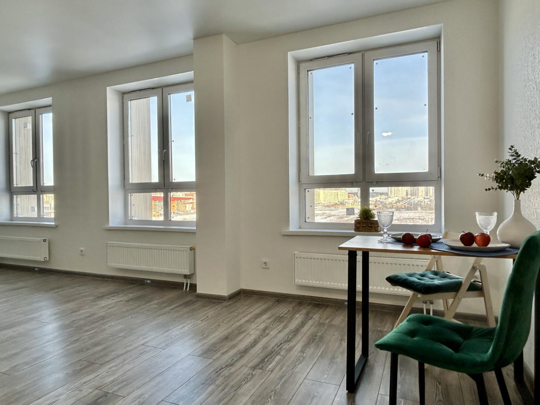 - окна выходят на разные стороны, обеспечивая отличное естественное освещение в течение всего дня и прекрасный вид на город