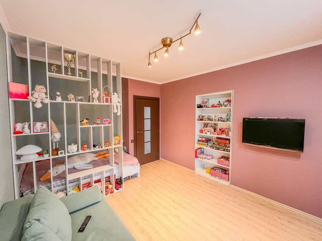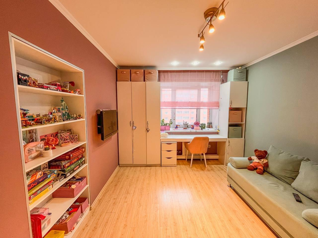 Особенности квартиры:Просторная гардеробная для хранения одежды и личных вещей.В коридоре и зоне отдыха уложена качественная плитка, которая легко моется и долговечна.В спальнях — современный ламинат, создающий уют и комфорт.Детская комната полностью оборудована для удобства и безопасности малышей.В гостиной и на лоджии установлены теплые полы, что создает уют и комфорт в холодное время года.Установлена новая современная кухня с встроенной техникой.В жилых зонах — большие телевизоры: в зоне отдыха и в спальне, что создает домашнюю атмосферу и позволяет наслаждаться любимыми программами и развлечениями.В квартире есть стиральная машина, посудомоечная машина и водонагреватель-бойлер, что обеспечивает максимальный комфорт и автономность.
