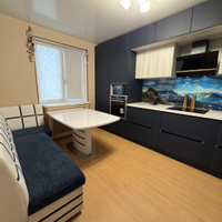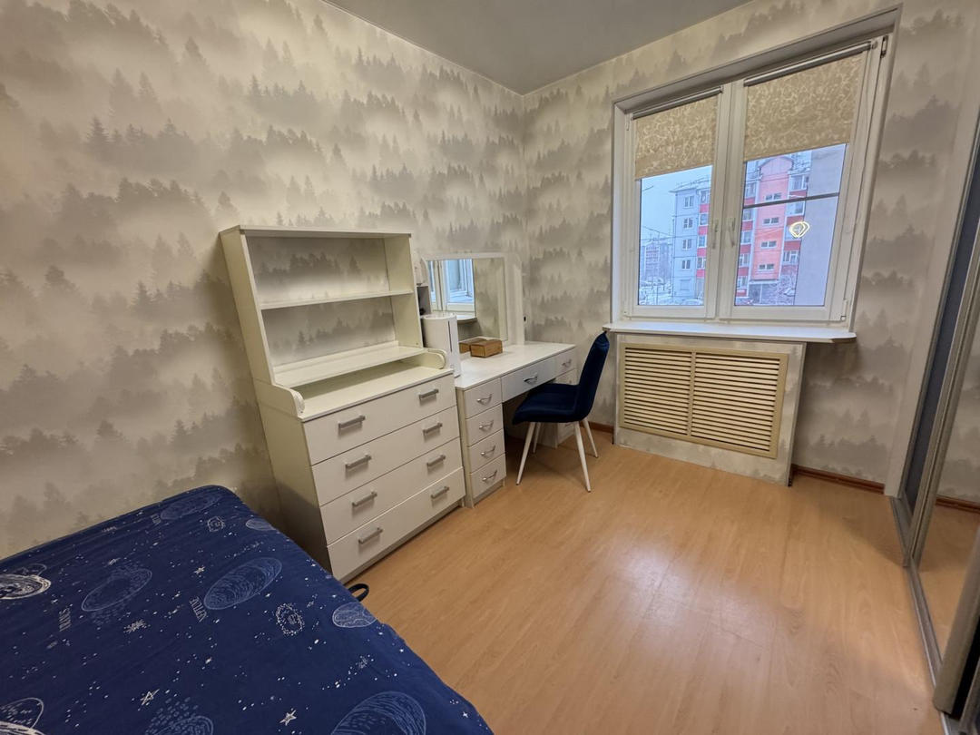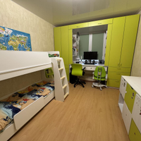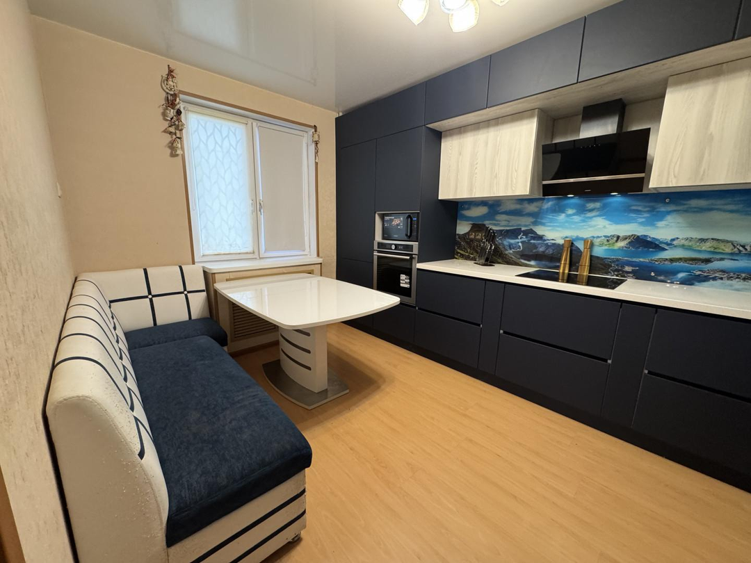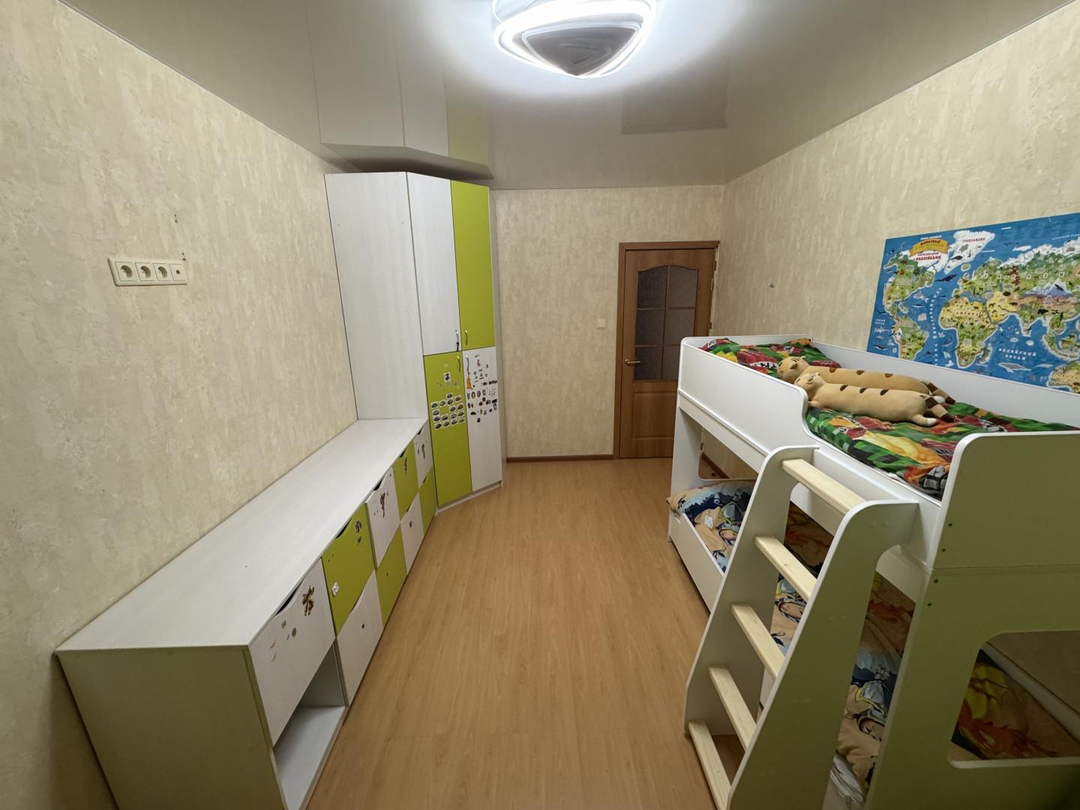 Квартира полностью готова к проживанию. Остаётся вся мебель и техника: холодильник в кухне, холодильник на лоджии, телевизор, компьютер в детской комнате, диван в большой комнате, кухонный гарнитур со встроенной бытовой техникой остаётся. В прихожей — тёплый пол, по всей квартире установлены стеклопакеты. Заменены проводка и сантехника, стоят чугунные радиаторы — всё уже сделано для вашего удобства.