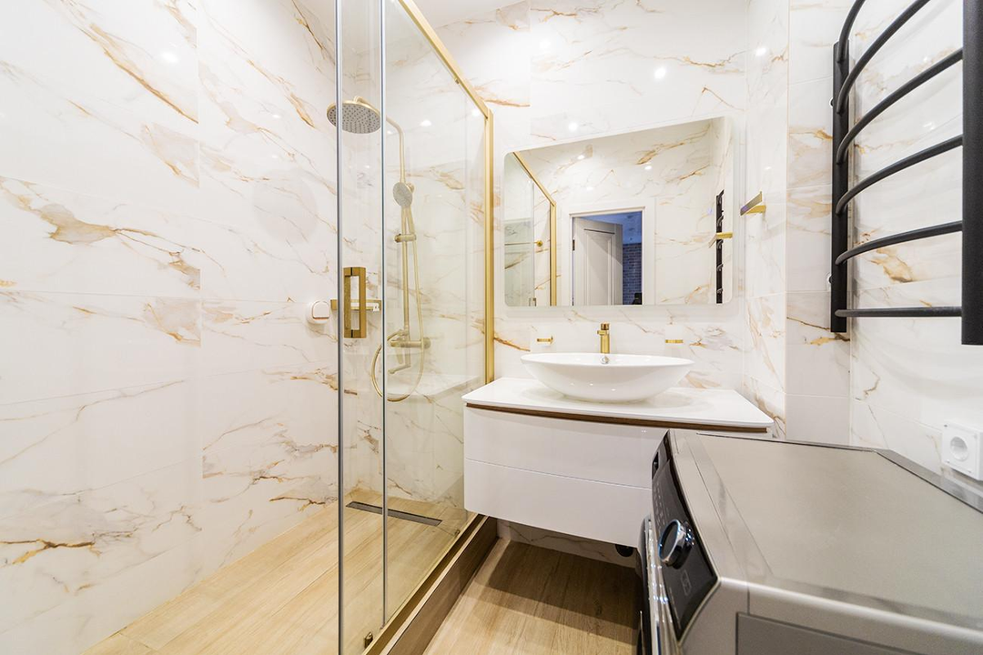 - Установлены кондиционер и теплый пол на кухне.