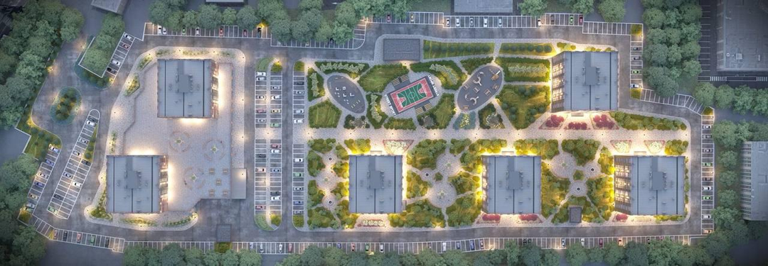 Коммерческие помещения на первых этажах жилых корпусов, в которых после ввода зданий в эксплуатацию откроются магазины, аптеки, салоны красоты.