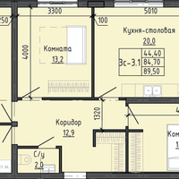 3-х комнатная квартира 89,57 кв.м.