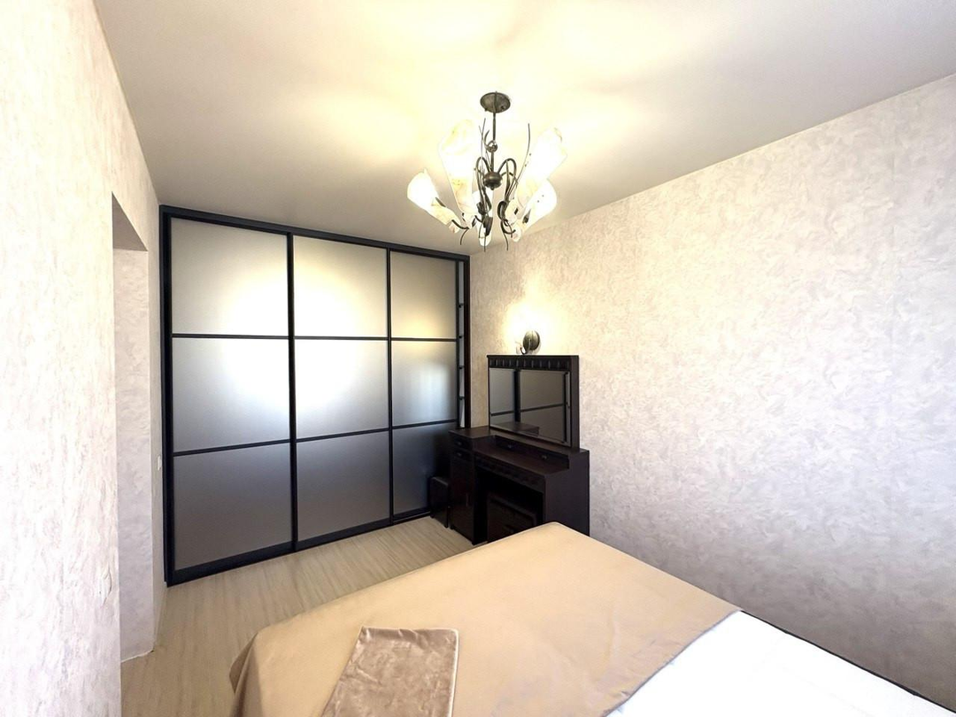 Две Уютные Спальни: Комфорт и функциональность. В основной спальне – кровать с ортопедическим матрасом, большая гардеробная и роскошный бархатный текстиль.