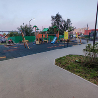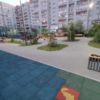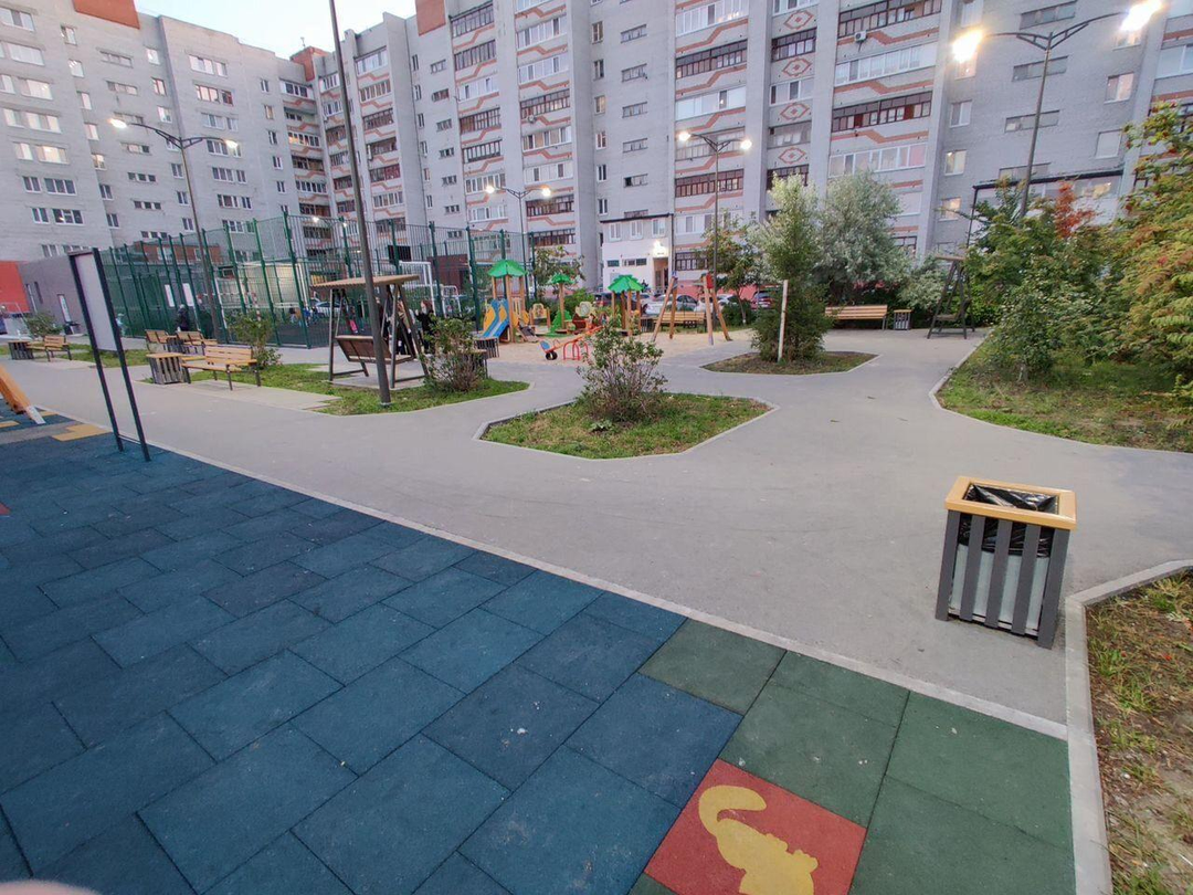 Двор с детской и спортивной площадками.