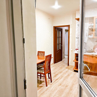 В квартире 2 лоджии, одна на кухни, вторая в спальне. По всей квартире стеклопакеты.