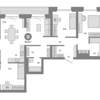 Предлагается квартира площадью 91,5 м², расположенная на 4 этаже 9-этажного кирпично-монолитного дома. Планировка продумана для комфортного проживания: просторная кухня площадью 29,5 м² отлично подойдёт как для семейных ужинов, так и для приёма гостей.