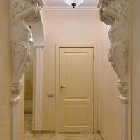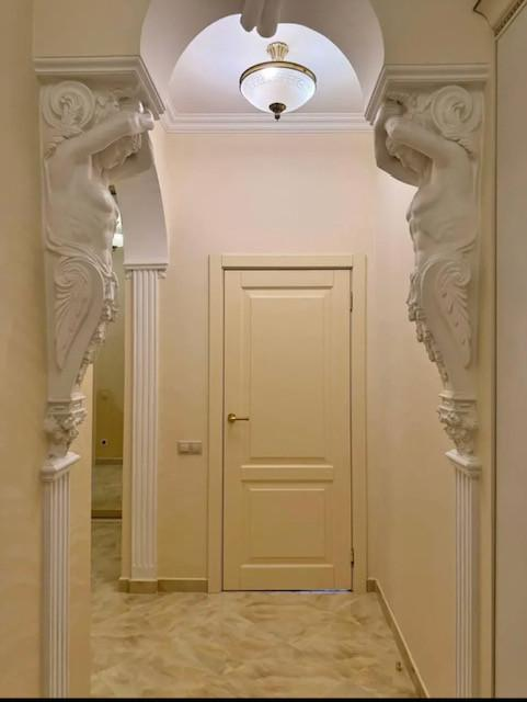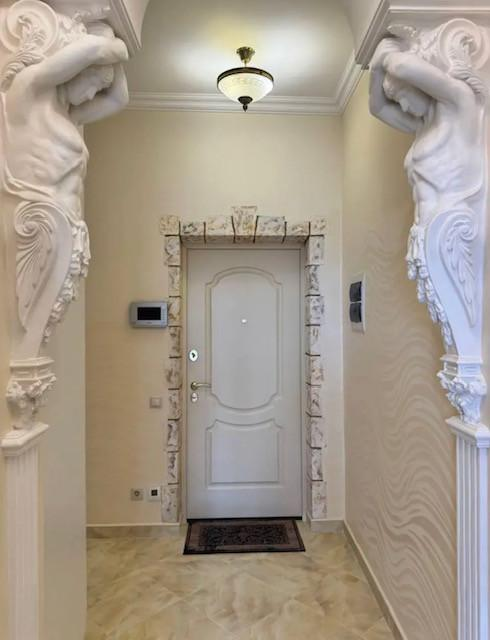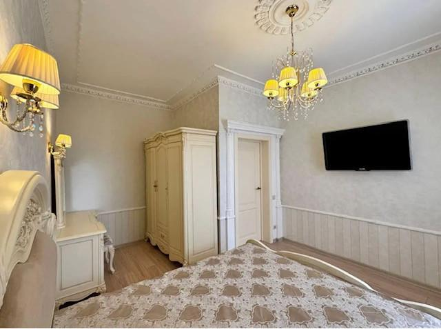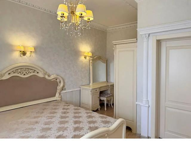Жилые комнаты светлые, с правильной формой и продуманной планировкой, что позволяет легко разместить мебель и создать комфортное пространство для каждого члена семьи. В отделке использованы декоративные элементы - лепнина, художественная роспись стен, колонны, что придаёт интерьеру индивидуальность и особый шарм. Имеется просторная гардеробная.