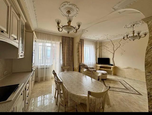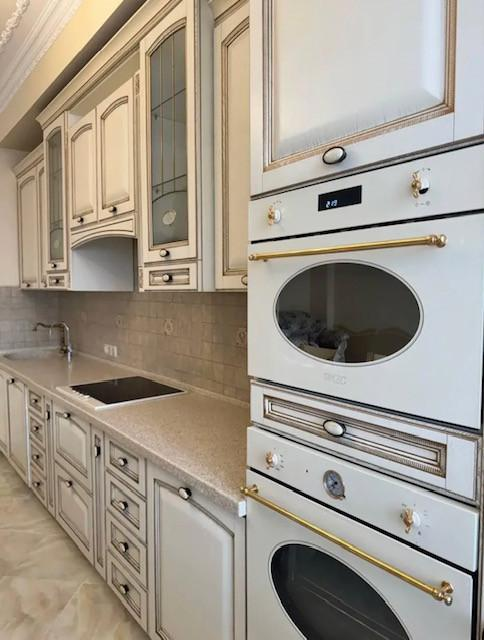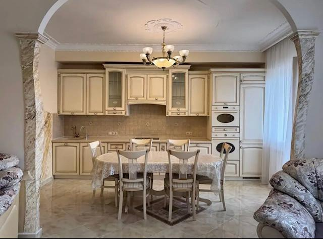 Выполнeн кaчecтвeнный peмонт в клаcсическом стиле с использованием дорогих и износостойких материалов. Просторная итальянская кухня плавно переходит в обеденную зону и уютную гостиную, создавая удобное пространство для семейных встреч и приёма гостей. Кухонный гарнитур выполнен на заказ, фасады и отделка подобраны в едином гармоничном тоне. Встроенная техника - варочная панель, духовой шкаф и микроволновая печь SМЕG, стиральная машина ВОSСН, встроенный холодильник LIЕВНЕRR.