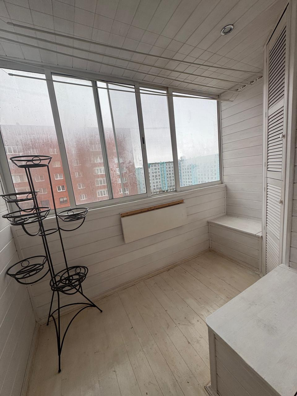 * 3 м лоджия обшита вагонкой светлого цвета, что расширяет пространство балкона.